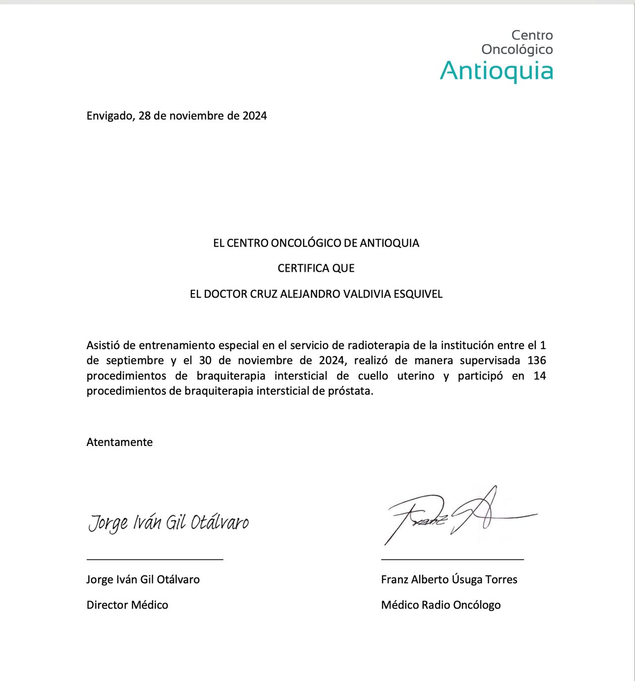 Médico Radio Oncólgo egresado del Instituto Nacional de Cancerología