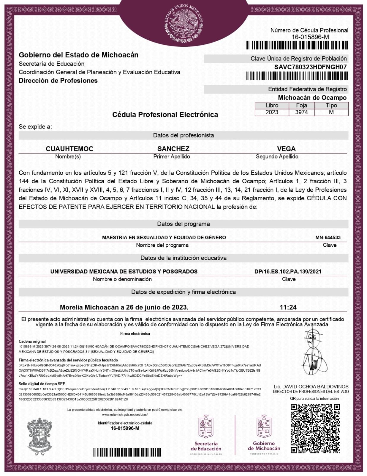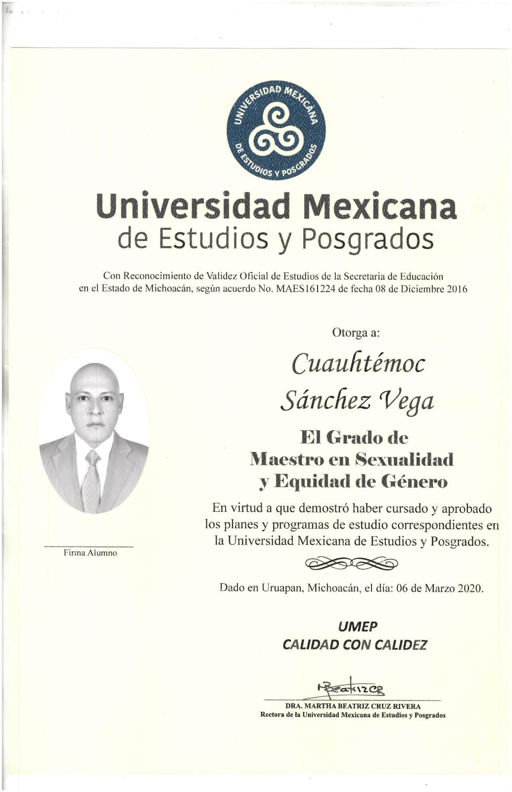 Soy Cuauhtémoc Sánchez Vega. Psicólogo egresado de la facultad de psicología UNAM. Mtro. En sexualidad y Equidad de Género por la UMEP. Psicoterapeuta con 10 años de experiencia en procesos psicoterapéuticos. Mi formación en sexualidad comenzó a los 20 años. He colaborado y formando a profesionales en temas de sexualidad y sexología en diplomados de opción a titulación para la Escuela Nacional de Trabajo Social-UNAM y la Facultad de psicología-UNAM.