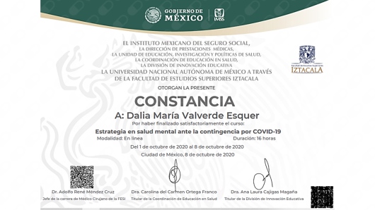 Como profesional de la salud mental, te puedo enseñar habilidades de comunicación para transmitir esas emociones que te cuesta trabajo demostrar, recuerda que el atender nuestra salud mental habla muy bien de nosotros como personas. Así como ayudar a definir y entender tus metas, aclarando quien eres y que es lo que deseas de la vida. Acudir a terapia ha ayudado a muchas personas en el mundo, es de suma importancia ya que te da herramientas para superar bloqueos emocionales y desarrollar estrategias que te permitan afrontar tu presente y futuro. Experiencia como psicóloga en Instituciones de Educación básica y educación especial. Experiencia como docente en Instituciones de Educación superior. Capacitadora en escuelas para padres, empresas e instituciones gubernamentales. Psicóloga en el Instituto Mexicano del Seguro Social, con amplia experiencia en la situación actual de pandemia. Trastornos del estado de animo y proceso de duelo. Experiencia en psicoterapia. Participación en programa de radio, en la sección de salud mental. Experiencia en el trabajo con mujeres victimas de violencia familiar y de género. Experiencia en programas preventivos (adicciones, violencia, embarazo y comunidad).