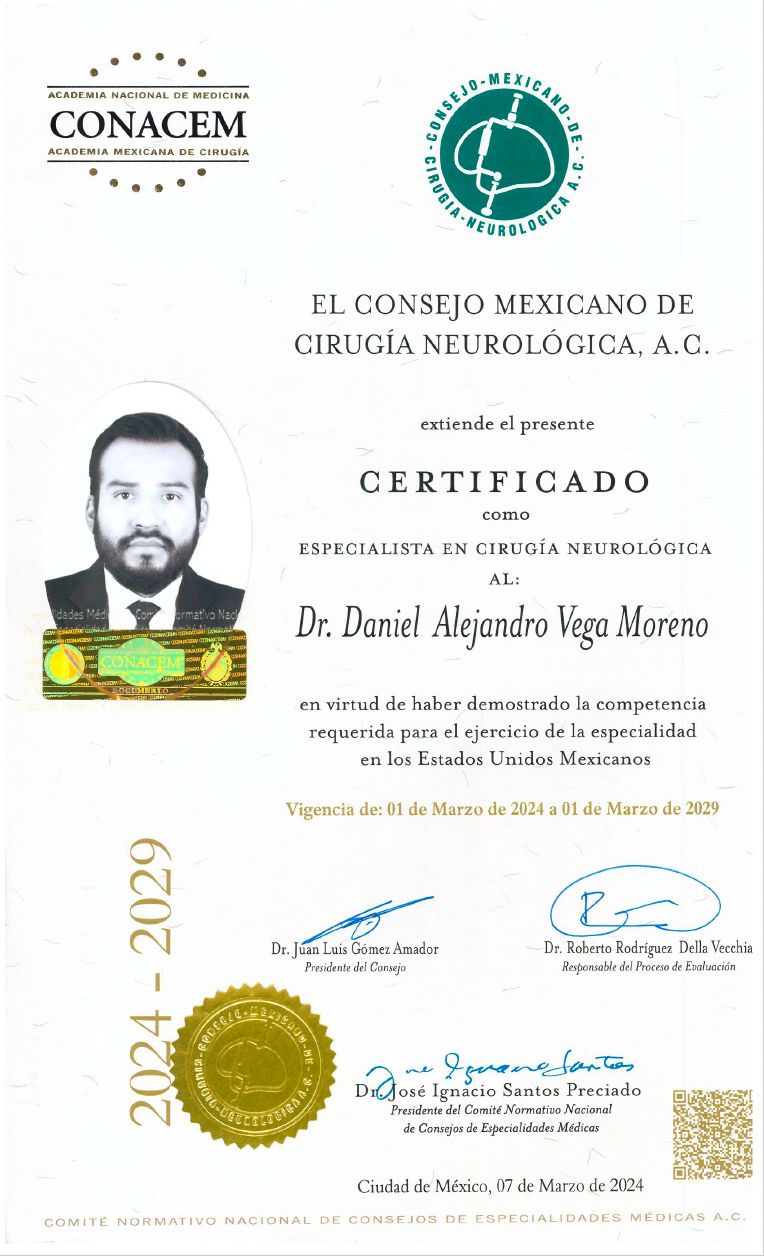-Estoy Certificado por el Consejo Mexicano de Cirugía Neurológica, número 1614