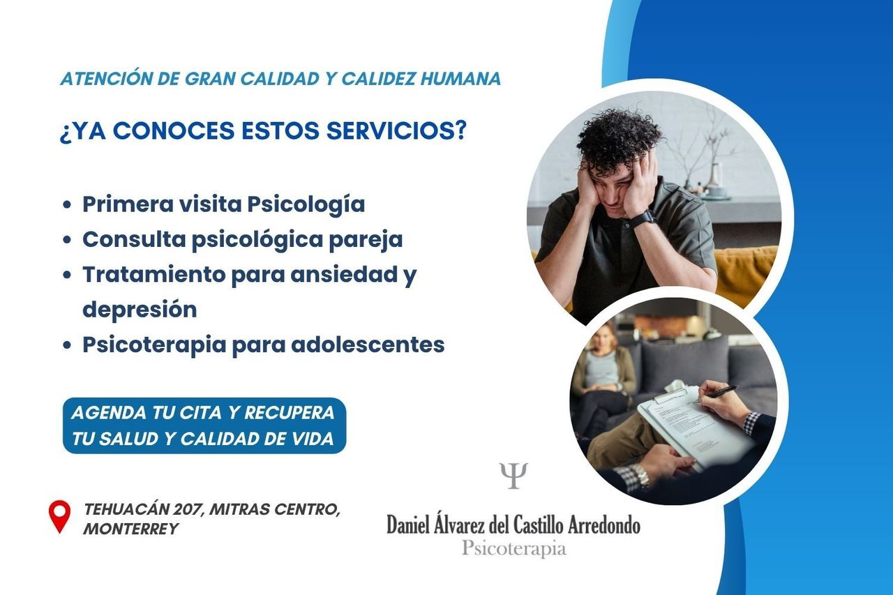 Soy el Mtro. Daniel Alvarez del Castillo Arredondo especialista en Psicoterapia de adultos y pareja. Cuento con más de 15 años de experiencia como especialista en la atención a adolescentes, adultos y pareja.