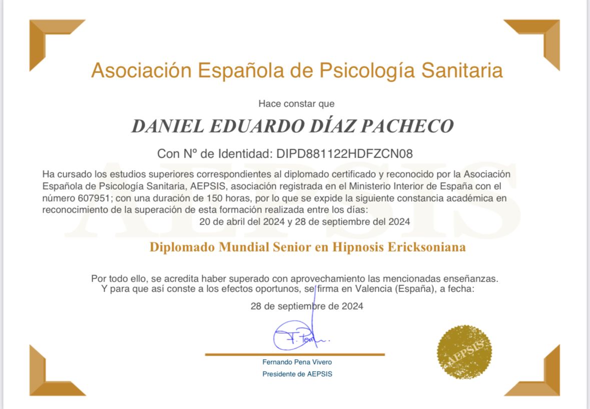 • Diplomado en Hipnosis Ericksoniana para fines psicoterapéuticos