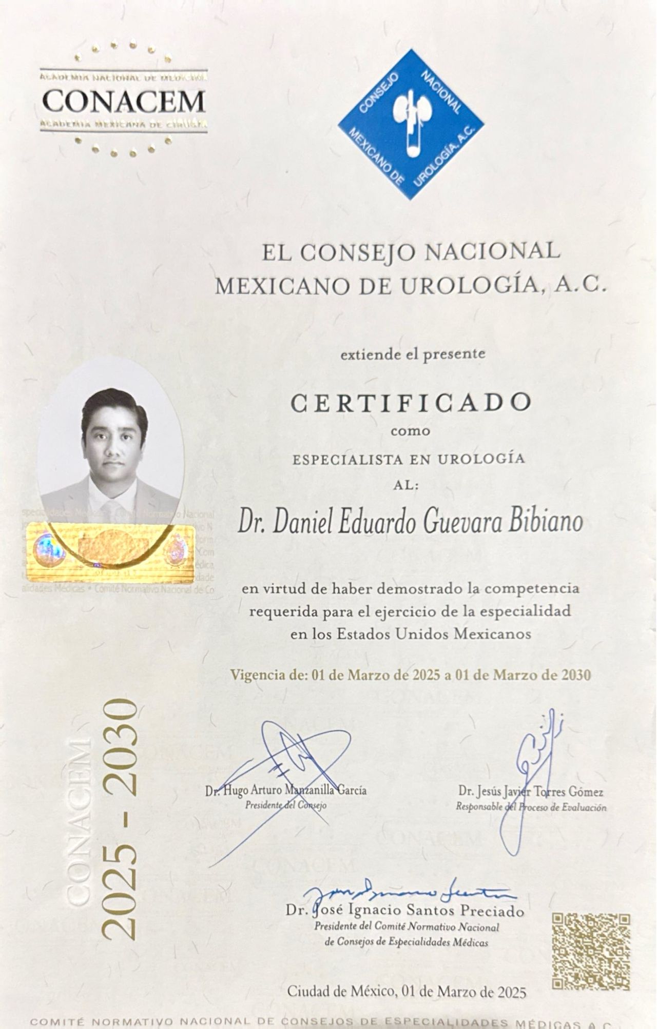 Como tu urólogo, mi objetivo es brindarte una atención eficaz médica y quirúrgica de los padecimientos y enfermedades de las vías urinarias (riñones, uréteres, vejiga, próstata y genitales masculinos), en un ambiente de empatía y, sobre todo, humanista y ético. Mi formación en la especialidad de Urología en una Unidad de Alta Especialidad y mi constante actualización, me permite poner a tu disposición información y atención a la vanguardia de la medicina, para lograr la resolución de tus padecimientos con los mejores resultados y, con ellos, mejorar también tu calidad de vida.