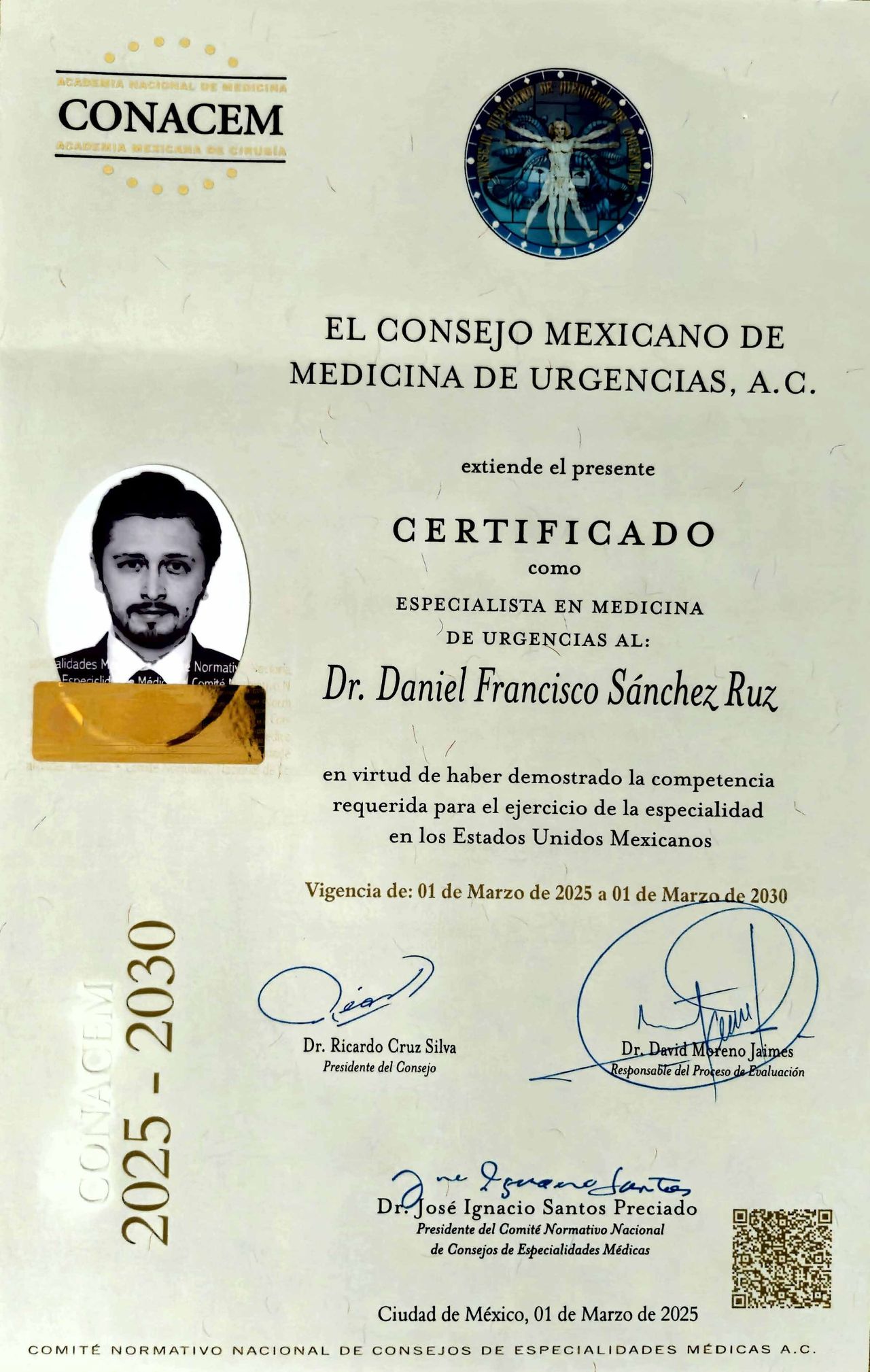 Certificado por el Colegio Nacional de Médicina de Emergencia de México.