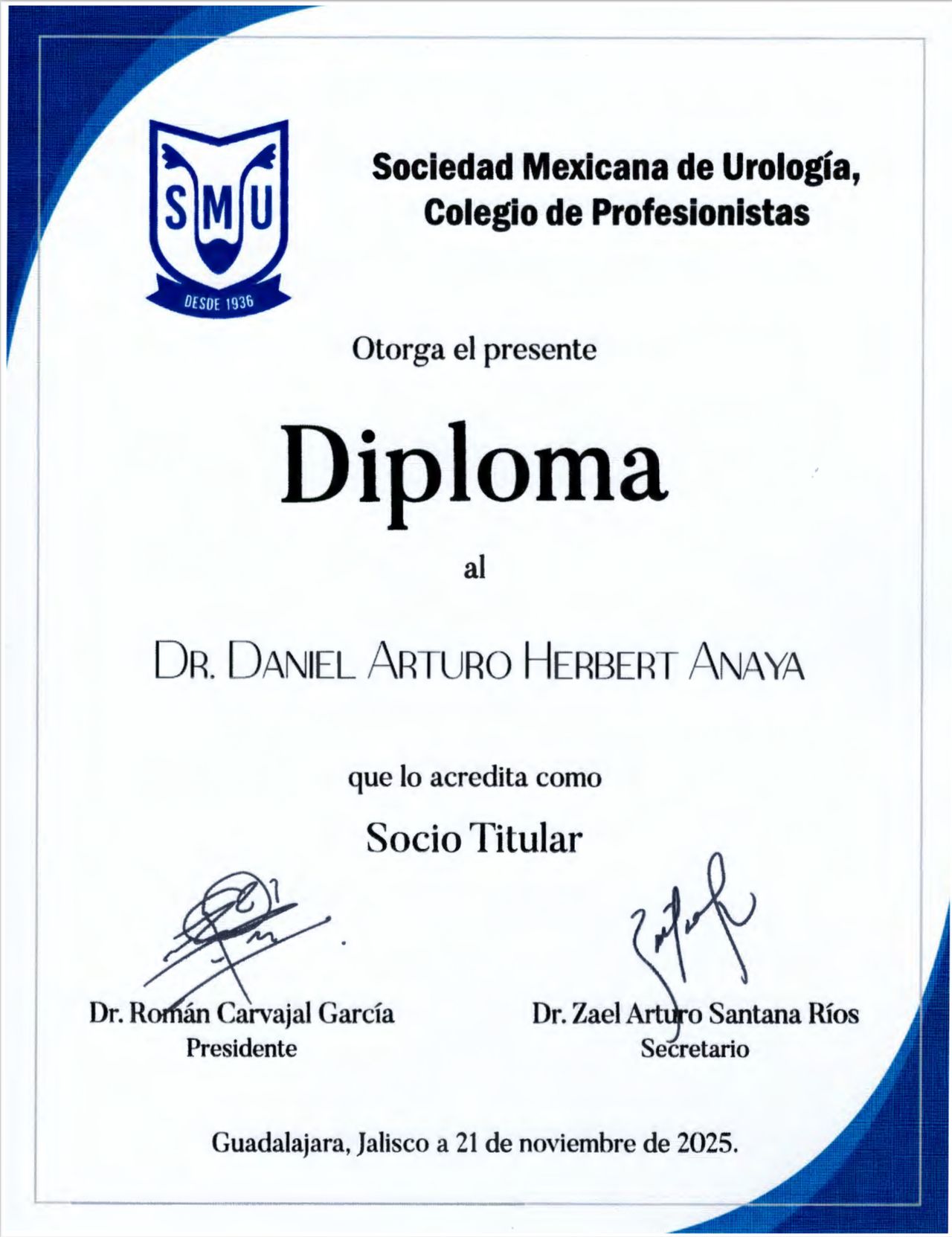 Además tengo un Posgrado de Alta Especialidad en Urología Oncológica.