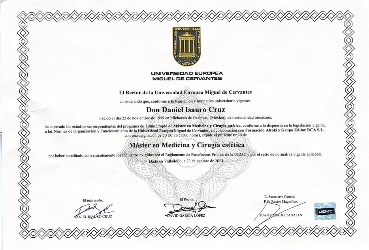 Soy médico estético graduado de la Universidad Europea Miguel de Cervantes, en Valladolid, España, en el año 2023. Desde entonces, he ejercido en consulta privada, con un enfoque personalizado y humano para cada paciente.
