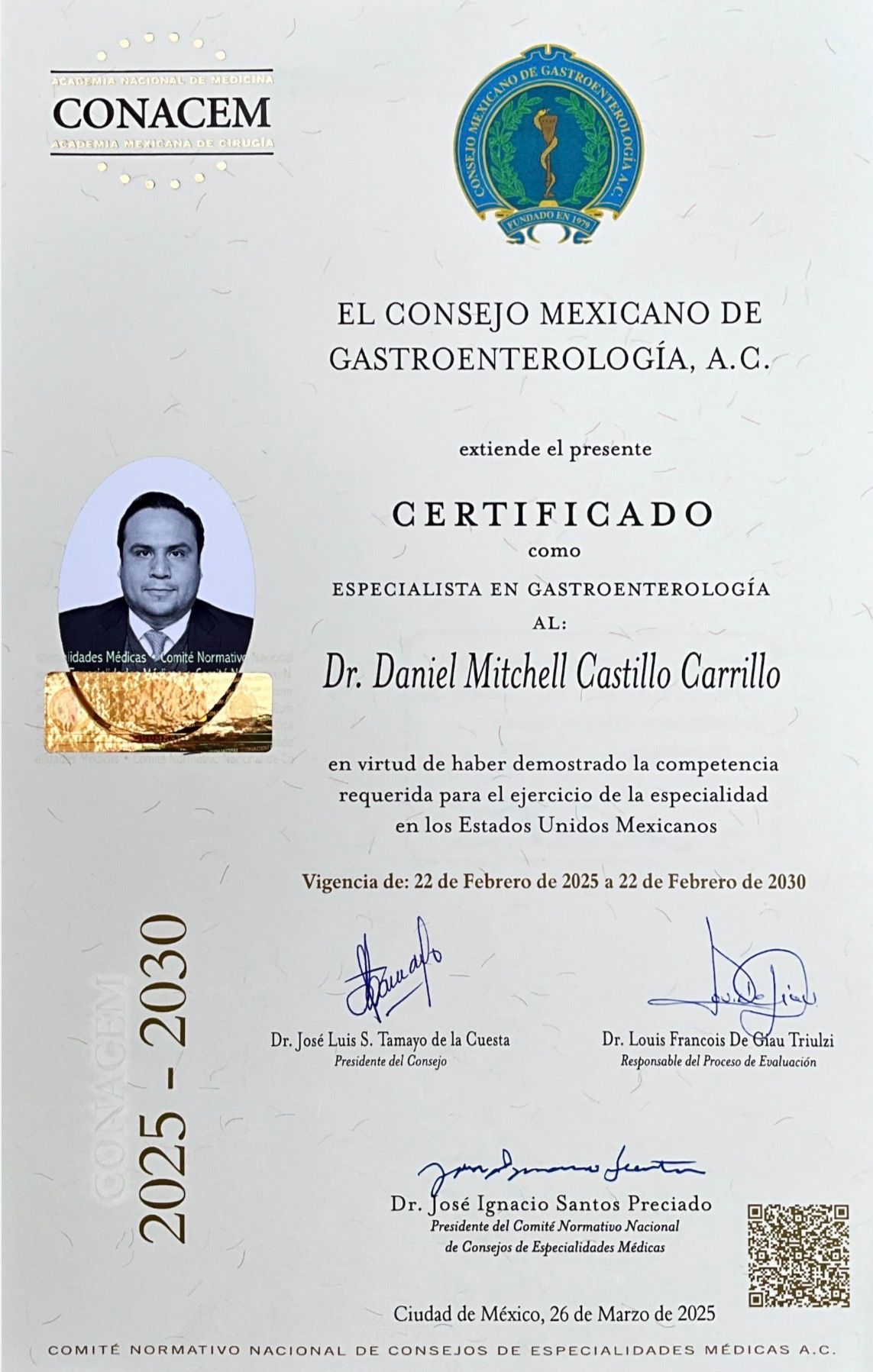 Excelente Doctor! Es el mejor gastroenterólogo que he conocido. El trato es muy profesional y explica perfectamente todo, y es muy minucioso en su diagnóstico, tratamiento y seguimiento. Lo recomiendo ampliamente, el es el gastroenterologo de cabecera de toda mi familia.