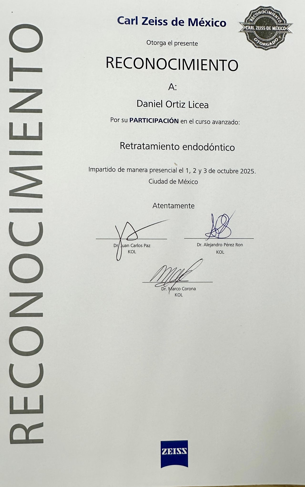 Mi principal objetivo es aliviar el dolor de mis pacientes con un tratamiento efectivo e indoloro brindándole así una nueva oportunidad a sus dientes de permanecer más tiempo en boca. Esto puede ser posible con el tratamiento de endodoncia, cuento con la experiencia y equipo necesario, con actualización profesional constante y atención especializada en MICROSCOPIA ENDODONTICA, SISTEMAS ROTATORIOS y Odontologia Estética.