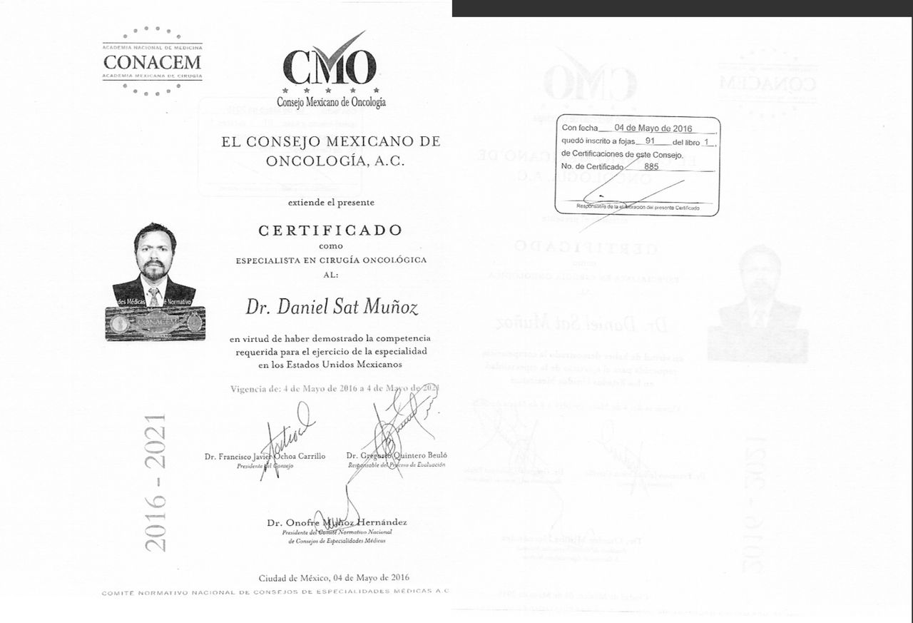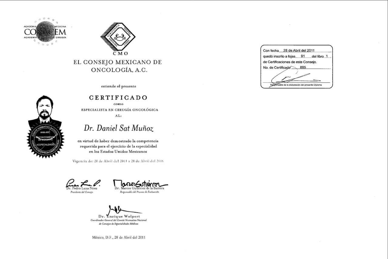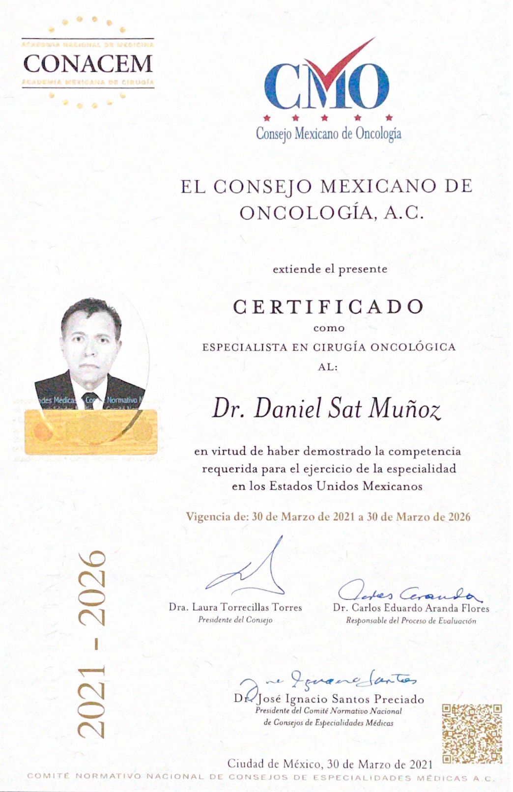 Me permito presentarme, soy el Dr. Daniel Sat Muñoz, cirujano oncólogo con más de 20 años de experiencia en cirugía oncológica.