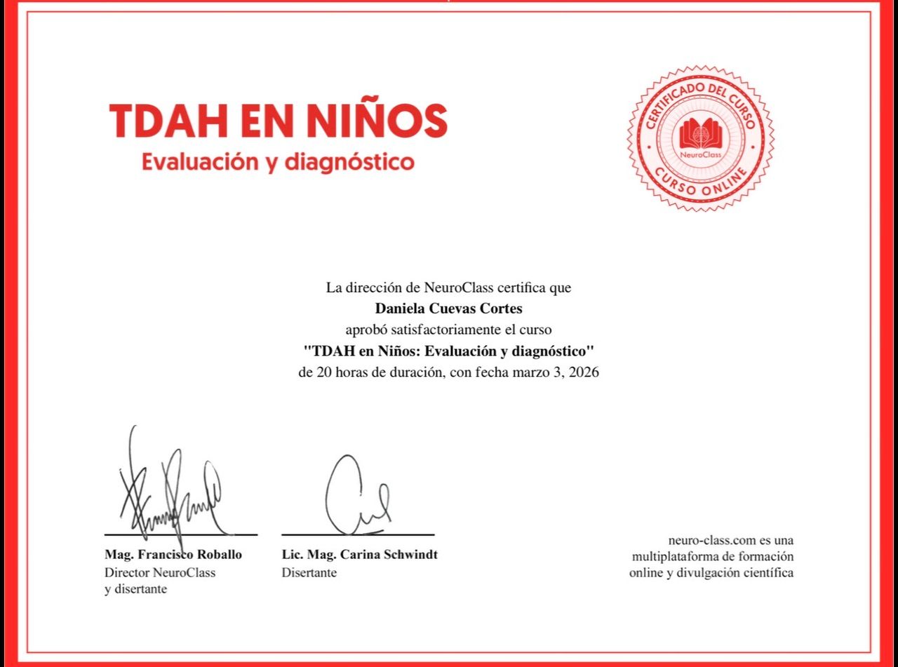 Estoy convencida que con Daniela como mi psicóloga podré progresar mucho, es diferente esta vez, con ella me siento realmente escuchada. Me agrada mucho su forma de trabajar y es una excelente psicóloga. Muchas gracias.