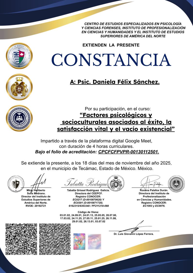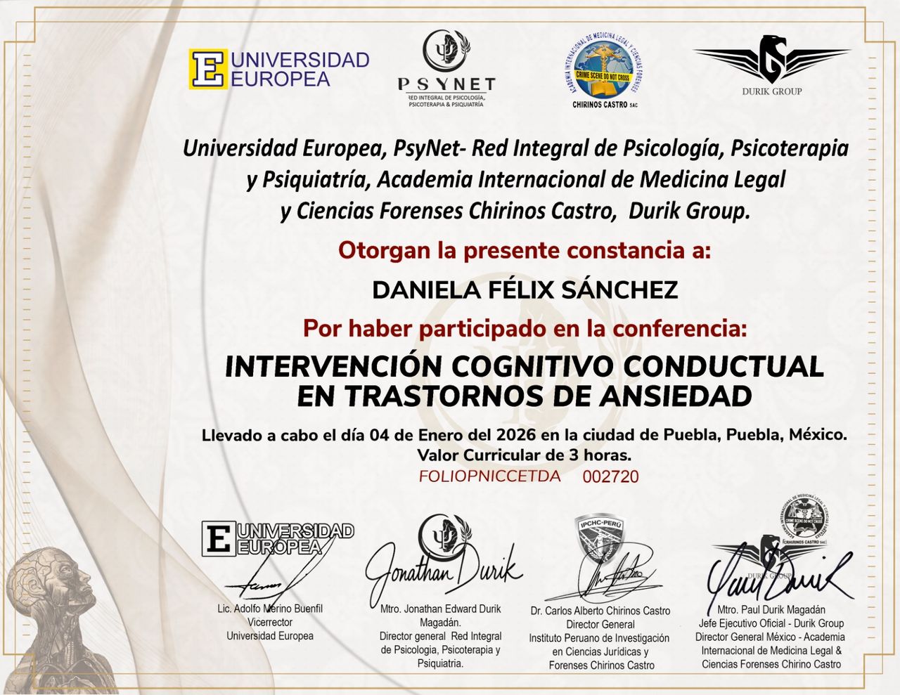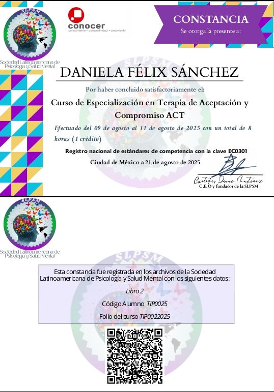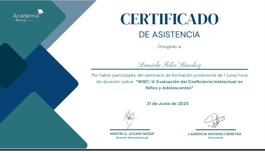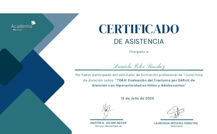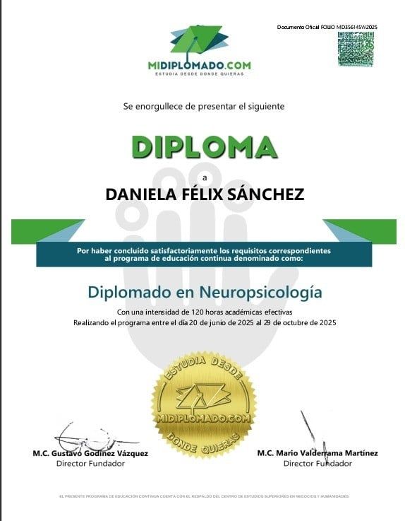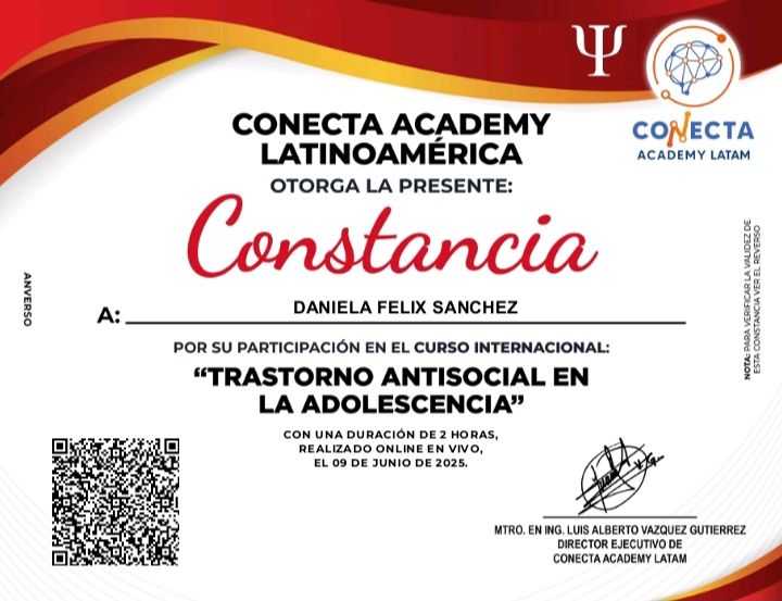 La Dra. Daniela es muy atenta y es clara con lo que quiere comunicar. Es una persona bien preparada y ofrece un tratamiento efectivo. La recomiendo muchísimo, ella me ayudó demasiado. La mejor psicóloga que he tenido porque ya pasé por varios y solo me retenían, ella no, ella delimita el tiempo en terapia.