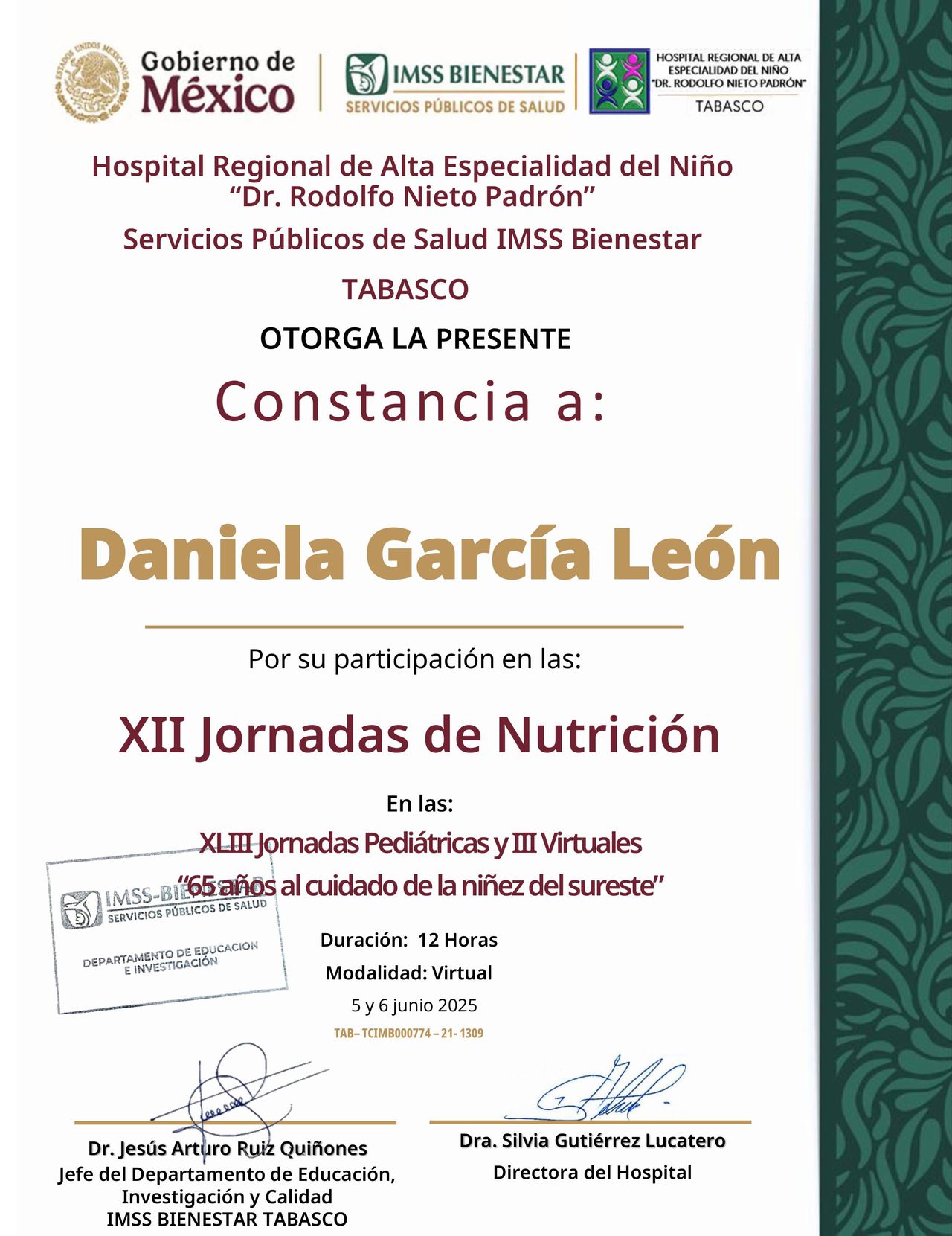 Daniela, desde el primer día, me brindó una atención muy profesional y empática, adaptando el plan alimenticio a mi estilo de vida, horarios, alergias o intolerancias, y a mis objetivos. Para mí, lo más importante era regular mi digestión; he ido mejorando y lo estamos logrando. Me ha enseñado a comer de forma más consciente y saludable. Siempre está disponible para resolver dudas y me motiva a seguir avanzando. ¡La recomiendo muchísimo!