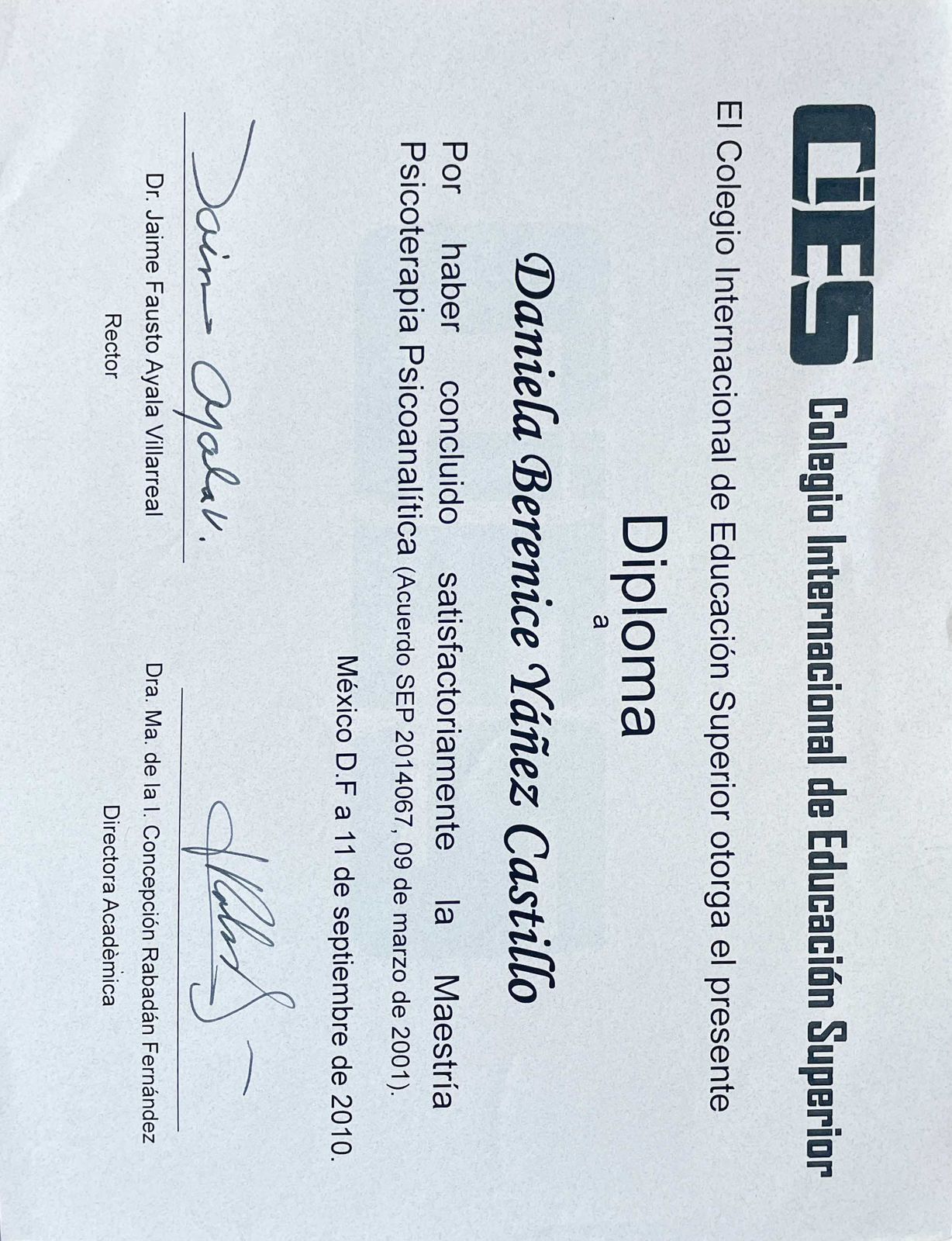 La Maestra Daniela, es una psicóloga maravillosa, aunque estamos empezando la terapia la verdad me siento muy en confianza con ella. Es muy atenta, me siento escuchada y me ha estado guiando con un enfoque muy práctico y actualizado. Tengo muchos problemas emocionales que he dejado acumular en mis 26 años de edad, así que busque ayuda y me he encontrado con una Profeional muy completa, la recomiendo ampliamente a nivel científico y humano.