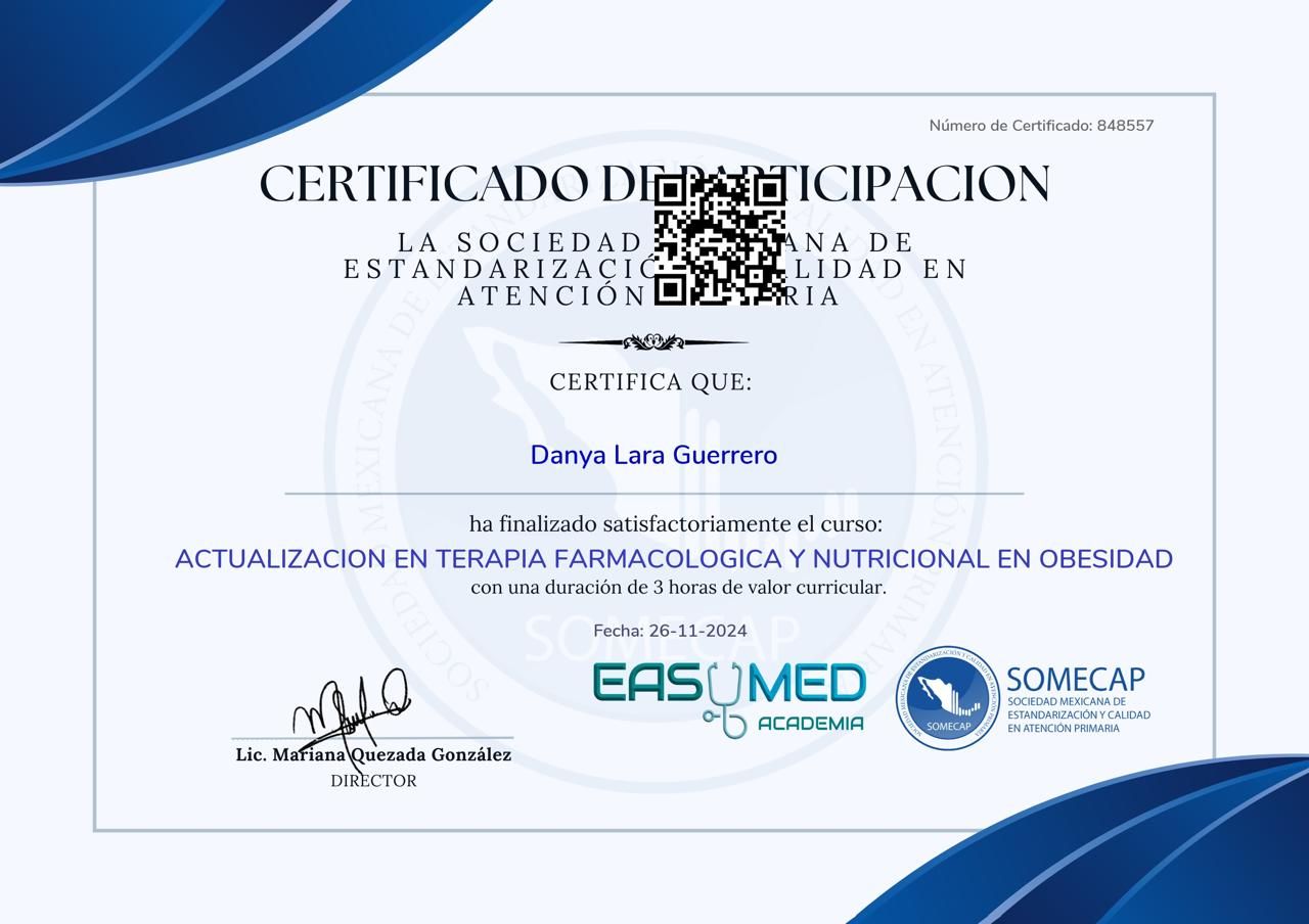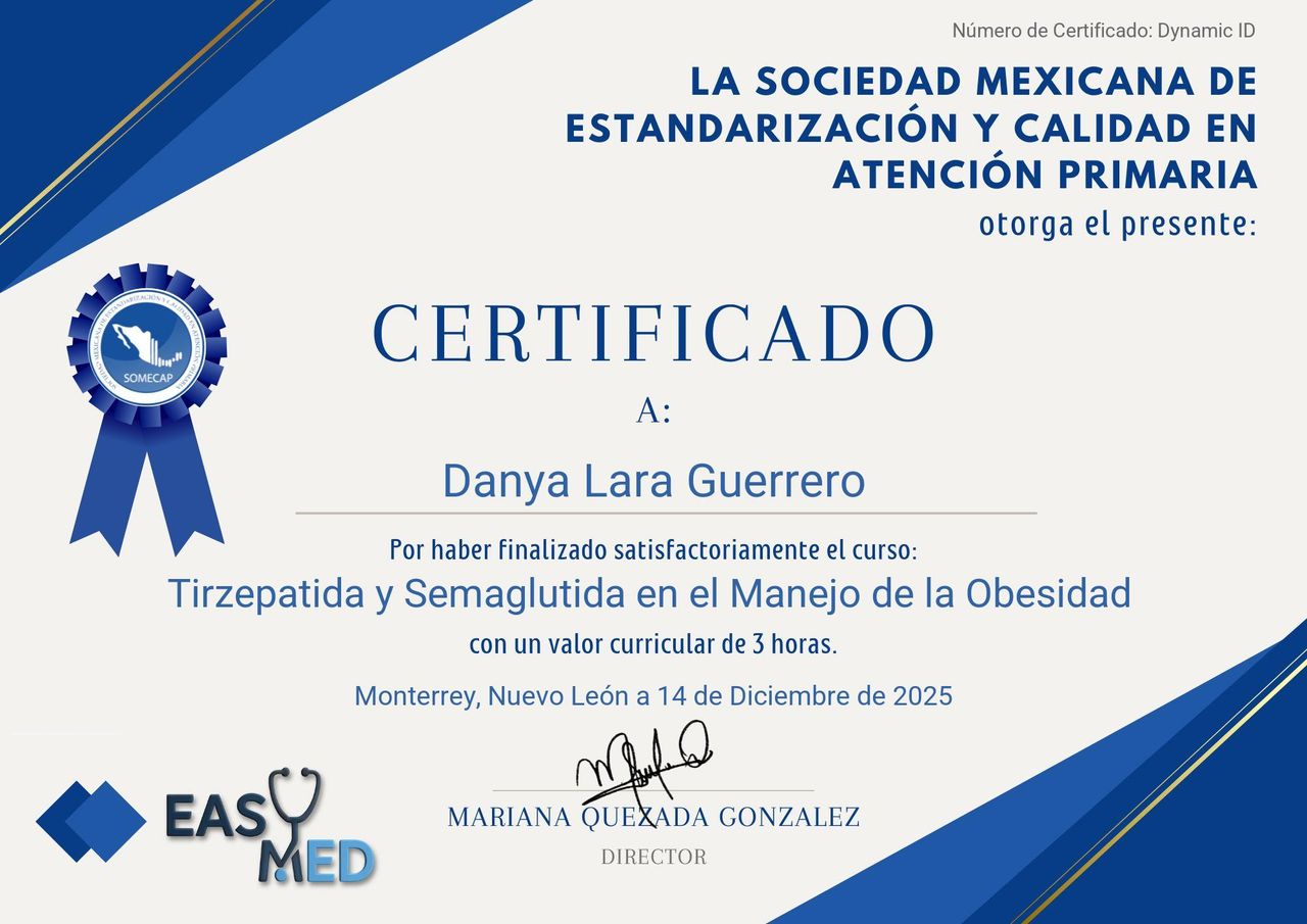 ¡Hola! Es importante que sepas un poco sobre mí: Soy médico general con enfoque en el manejo integral de sobrepeso, obesidad, diabetes tipo 2 y enfermedades metabólicas.