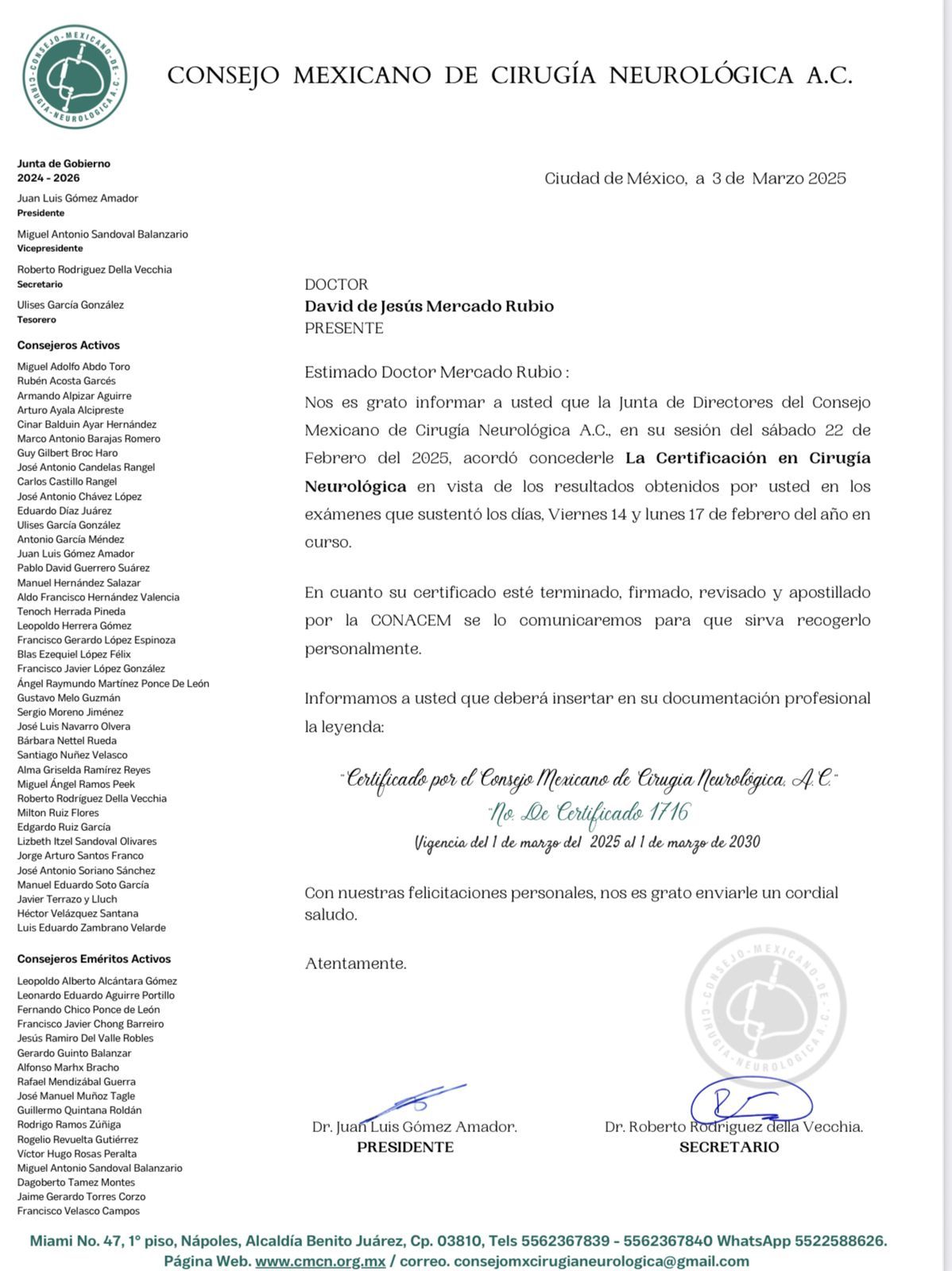 Soy neurocirujano con experiencia en cirugía de columna, base de cráneo y estimulación cerebral profunda. Atiendo pacientes en Ciudad Juárez, en Hospital Ángeles. Mi enfoque está centrado en brindar atención clara, técnica precisa y acompañamiento en cada etapa del tratamiento