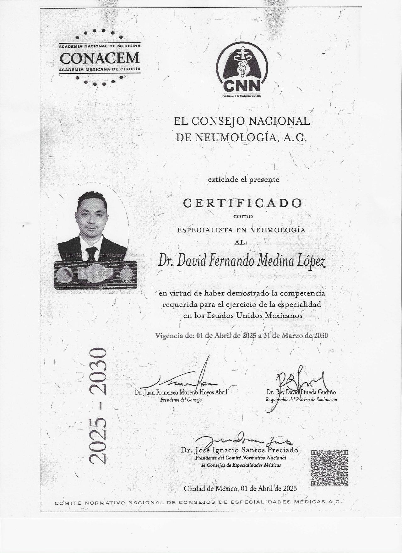 Certificado por el Consejo Nacional de Neumología