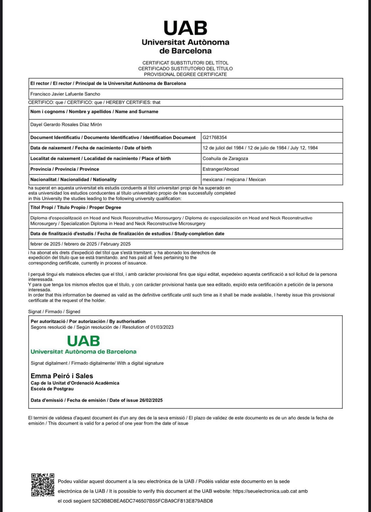 El Dr. Dayel me detectó y extrajó por cirugía un tumor en el segundo arco branquial.