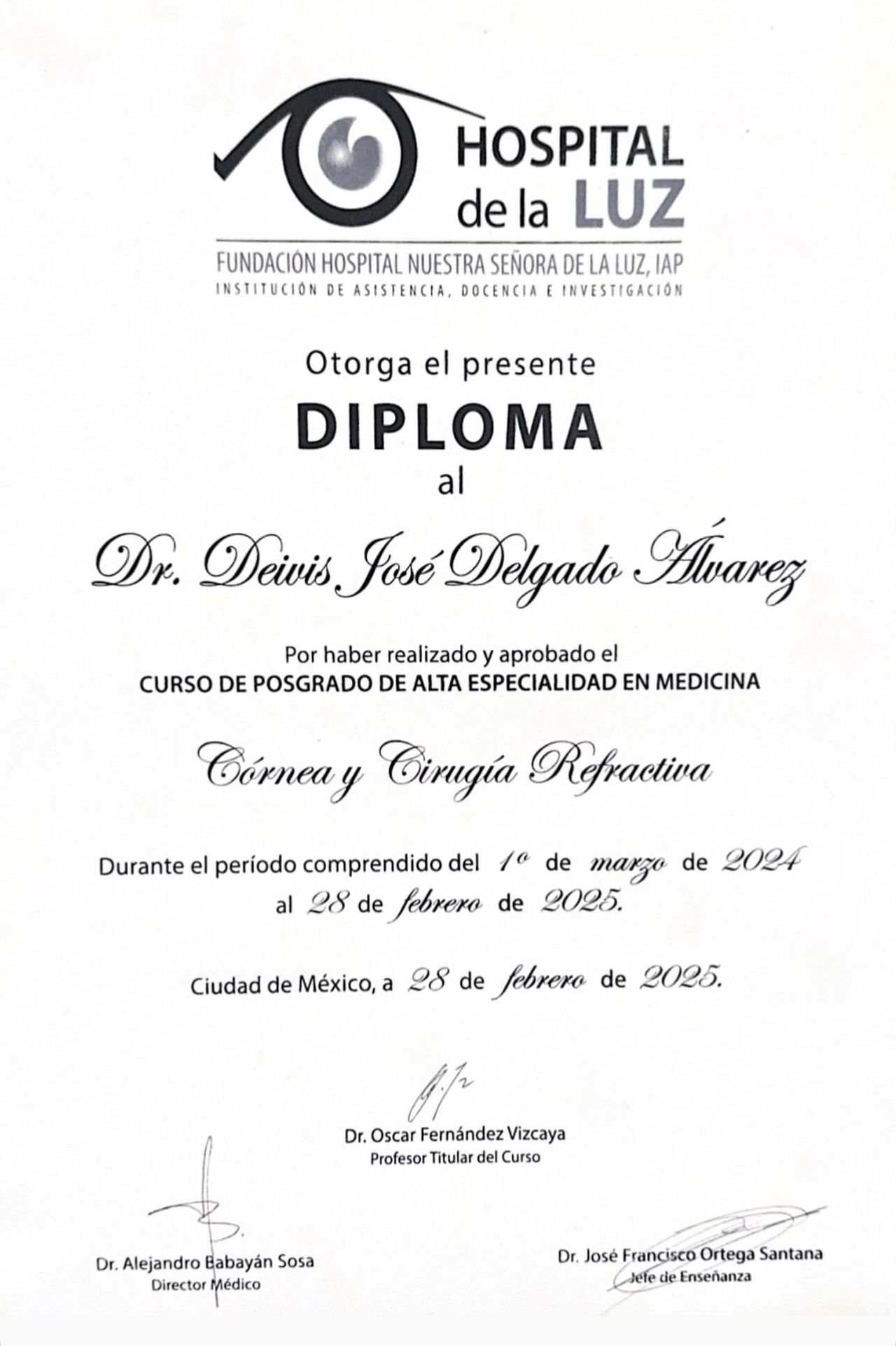 La atención que brinda el Dr Deivis es muy completa, durante todas las consultas es amable, atento y siempre responde a todas tus dudas, se asegura de explicar de manera clara para que te quedes tranquilo antes, durante y después del procedimiento, en mi caso fue una cirugía de ICL en ambos ojos, y todo el proceso estuvo atento incluso después de la cirugía.