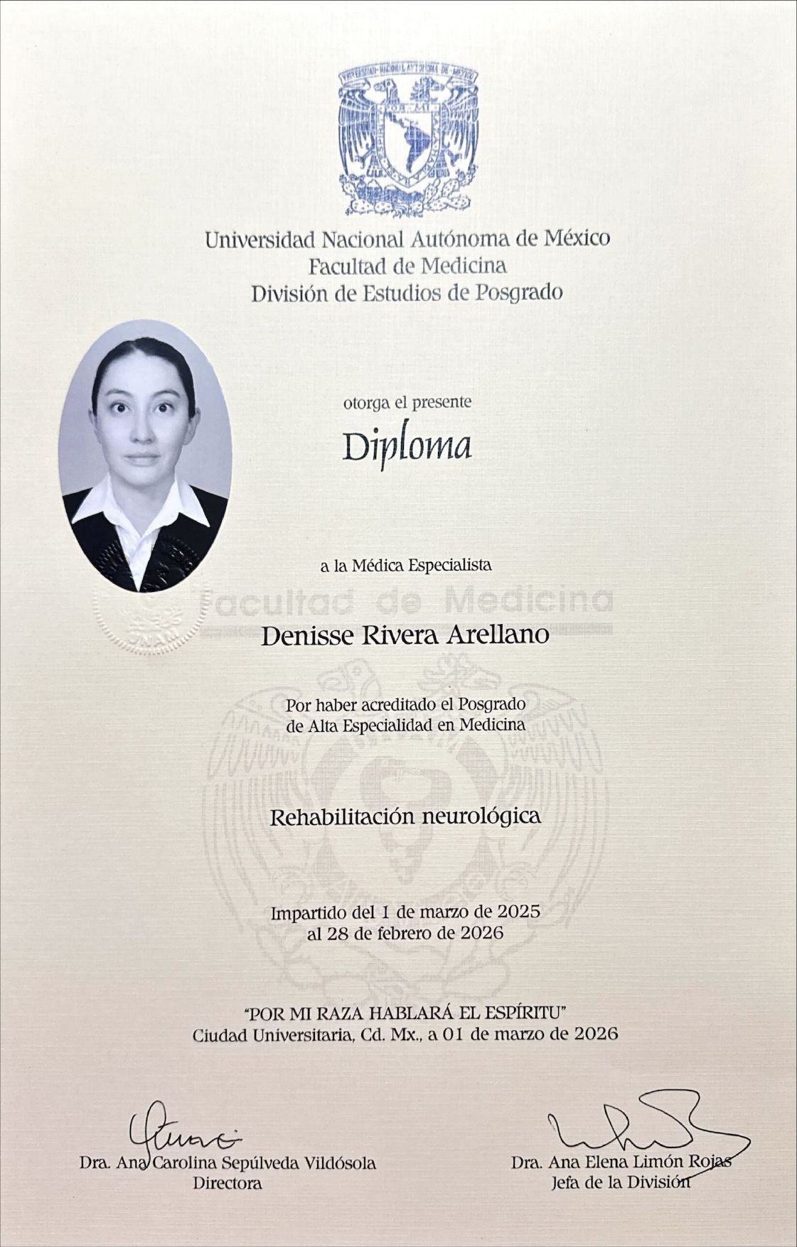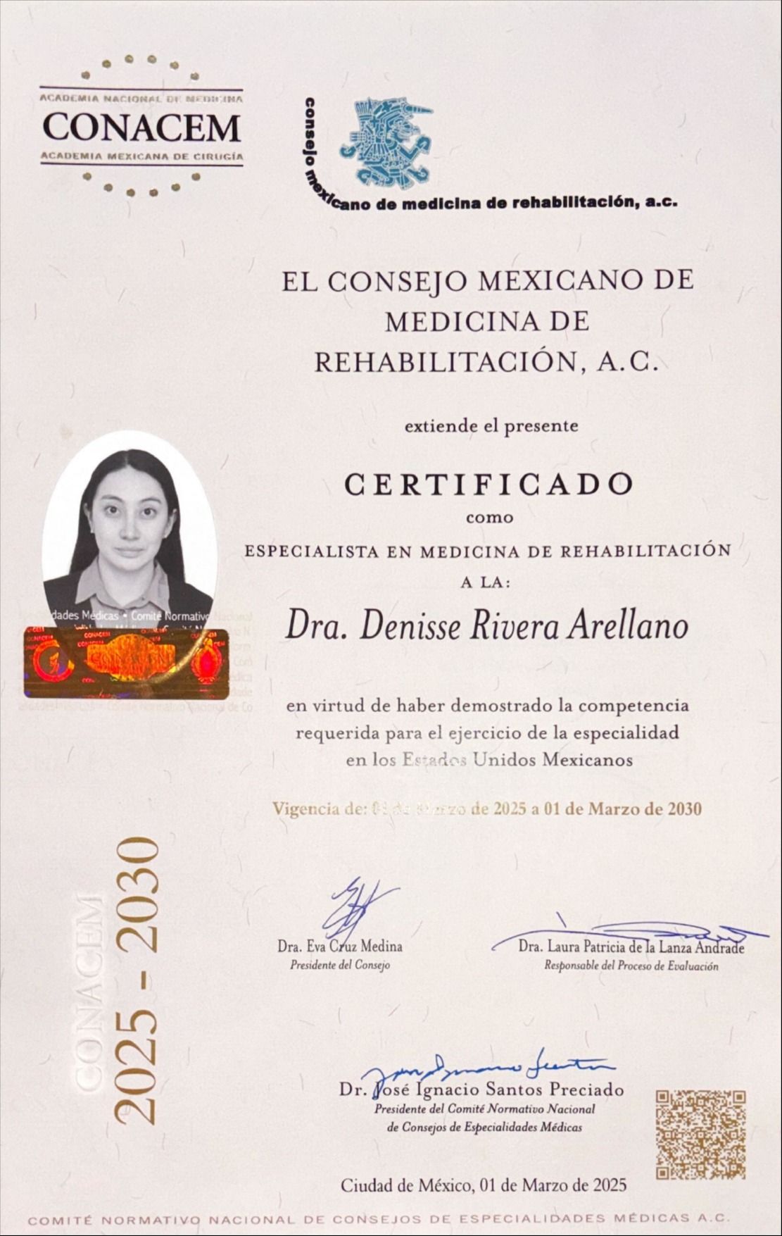 ¡Hola! Soy la Dra. Denisse Rivera Arellano, médica especialista en Medicina de Rehabilitación con una alta especialidad en Rehabilitación Neurológica. Mi objetivo principal es acompañarte en el proceso de recuperar la mayor funcionalidad e independencia posibles tras una lesión o enfermedad que afecte el sistema nervioso.