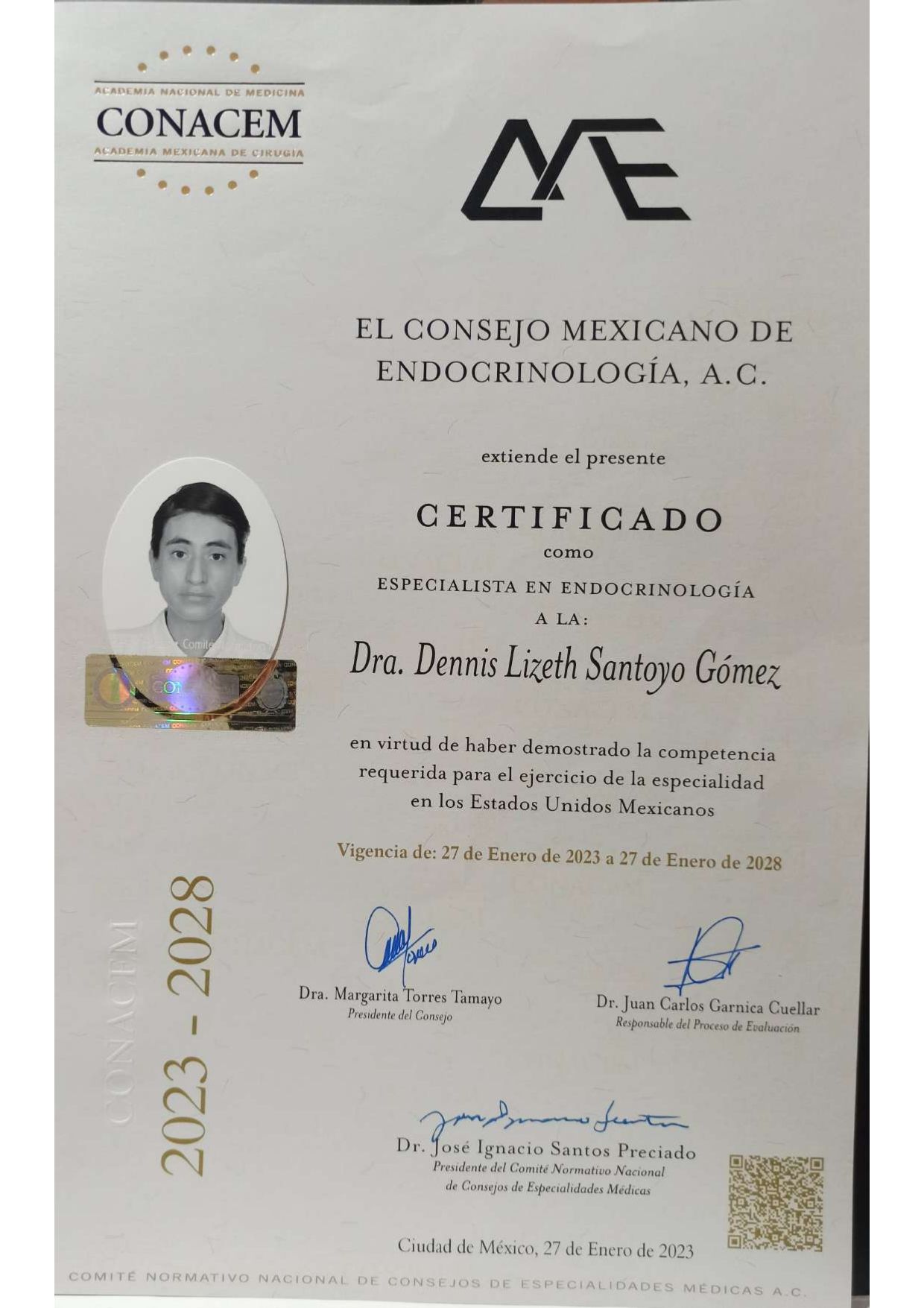 Soy médico especialista en endocrinología egresada de CMN La Raza con aval por la UNAM, estoy certificada por el Consejo Mexicano de Endocrinología y soy miembro activo de la Sociedad Mexicana de Nutrición y Endocrinología; realicé la licenciatura de médico general en la UAM, cuento con una maestría en nutrición clínica. Actualmente tengo experiencia en medio público y privado, y realizó actividades docentes como profesor ayudante de la especialidad de Endocrinología.
