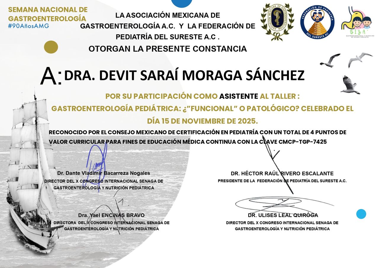 Apasionada por brindar un servicio de calidad enfocado en la salud digestiva de los más pequeños. Por ello, he dirigido mi formación hacia la Gastroenterología y Nutrición Pediátrica, siendo egresada del Instituto Nacional de Pediatría, uno de los mejores hospitales pediátricos del país. Durante mi estancia, tuve la oportunidad de participar en el diagnóstico y manejo de las patologías gastrointestinales pediátricas más desafiantes. Mi objetivo es mejorar la calidad de vida de los niños, trabajando en equipo con su familia, otros especialistas y su entorno.
