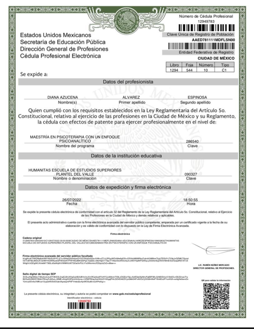 Soy Mexicana, tengo 47 años de edad y 11 años dando terapia psicoanalítica desde adolescentes a personas de la tercera edad, soy PsicoOncóloga, cuento con la habilidad de proporcionarte una escucha comprometida y comprenderte desde una perspectiva real y empática, ya que tengo 3 familiares directos con cáncer.