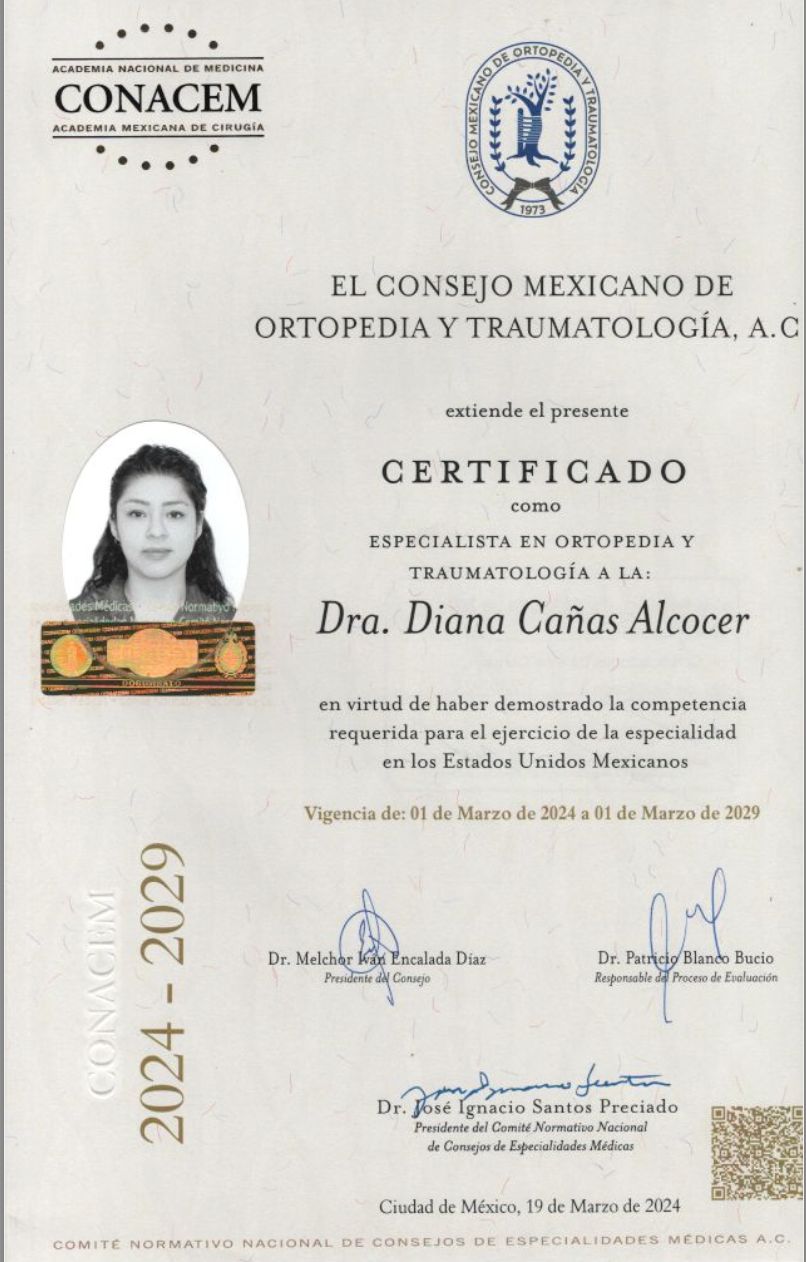• Dra. Diana Cañas Alcocer. Traumatología y ortopedia. Cirugía articular • Visitas sucesivas Ortopedia •