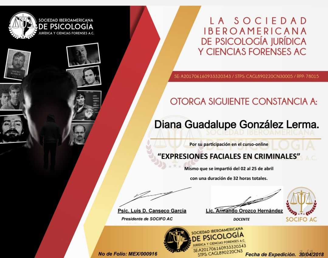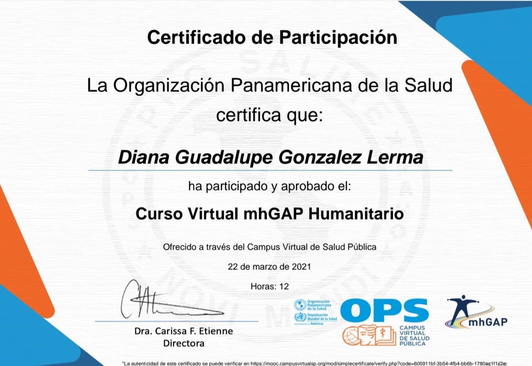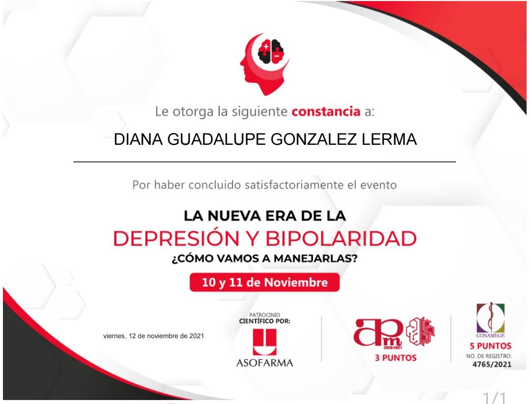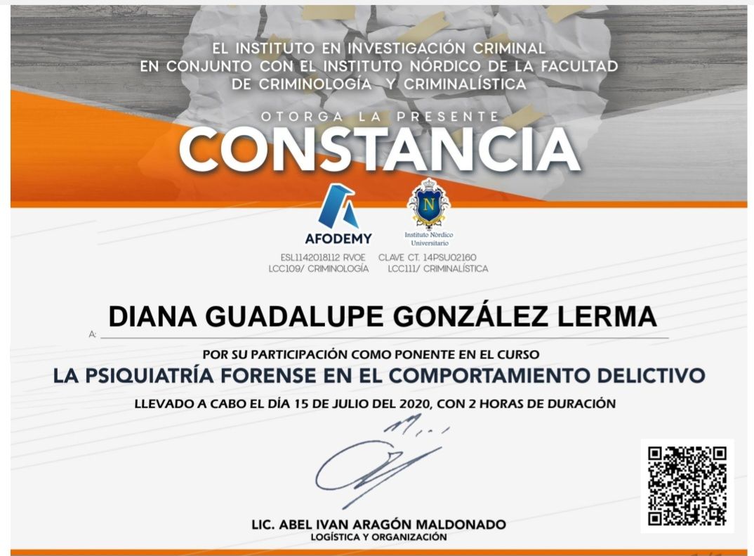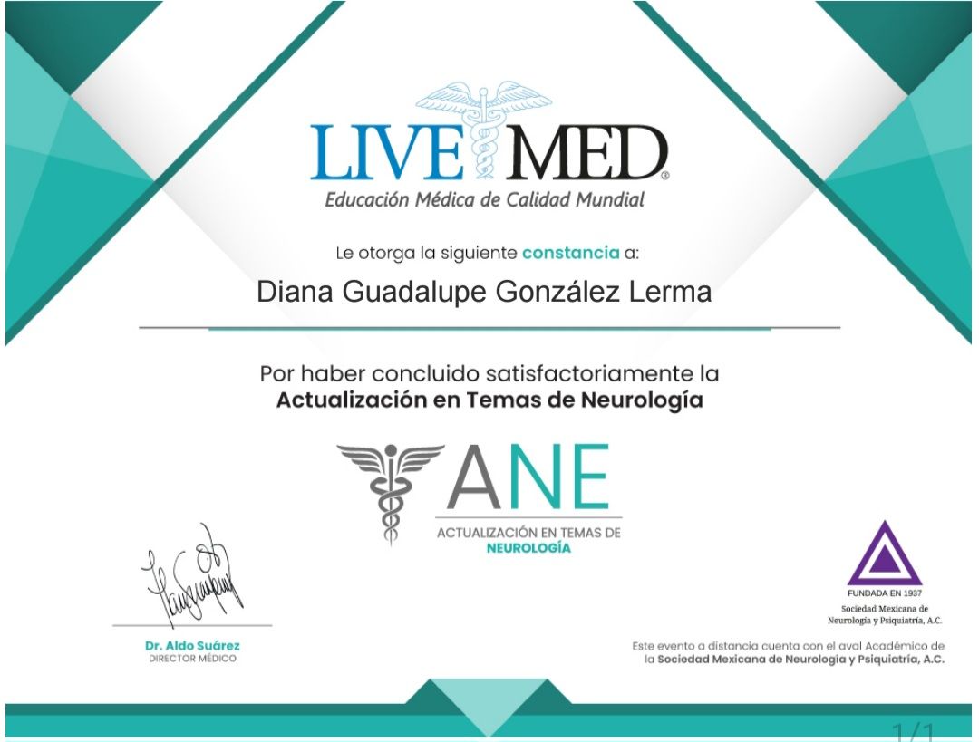 Me presento, soy la Dra. Diana Gonzalez Lerma; Médico cirujano por Universidad Autónoma de Sinaloa; estudie la especialidad en psiquiatría en Hospital Regional de Alta Especialidad en Salud Mental, en Tabasco, con el aval de la UJAT. Posteriormente ingresé a la alta especialidad en "Psiquiatría Legal y Forense", por la Universidad Nacional Autónoma de México, en conjunto con Hospital Psiquiátrico Fray Bernardino. En la preparacion academica, realice un diplomado en TELEMEDICINA, avalado por la asociación psiquiátrica mexicana, por lo que la atención en línea es un método seguro. Certificacion en estimulacion magnetica transcraneal.