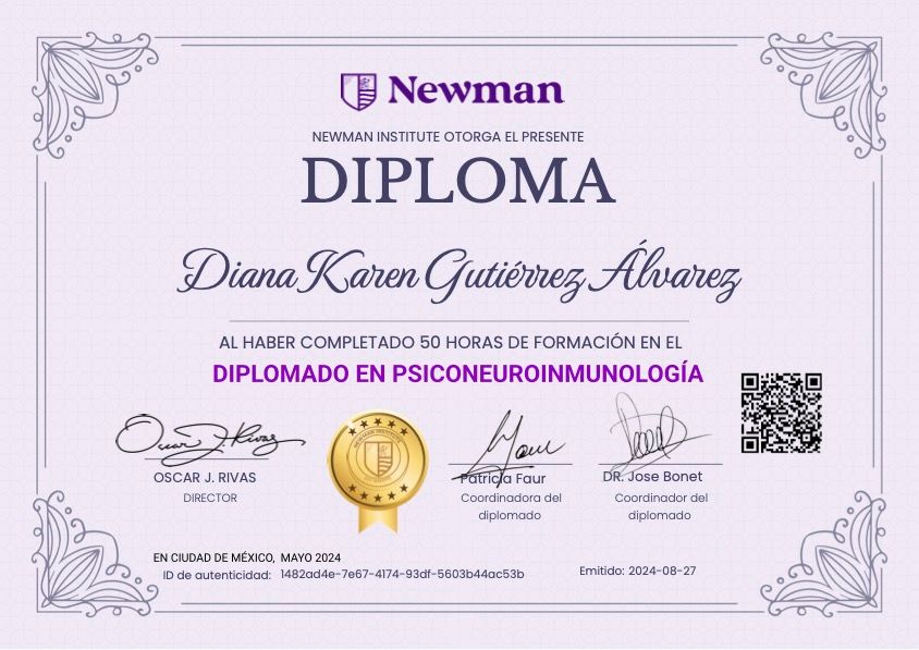 Cuento con un diplomado en Psicoinmunoneuroendocrinología y actualmente curso una Maestría en Neuropsiquiatría y neurociencias, lo que me permite seguir ampliando mis conocimientos para brindar una atención integral, basada en evidencia y centrada en la persona.