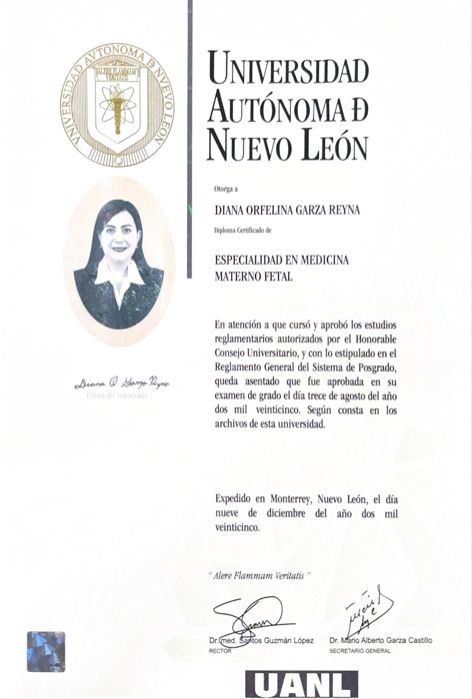 Continué mi formación como especialista en Ginecología y Obstetricia en el Hospital Universitario, UANL. Posteriormente cursé la Subespecialidad en Medicina Materno Fetal en el mismo Hospital, en donde tuve la oportunidad de rotar en Medicina Fetal México en Guadalajara para complementar mi conocimiento de la evaluación fetal.