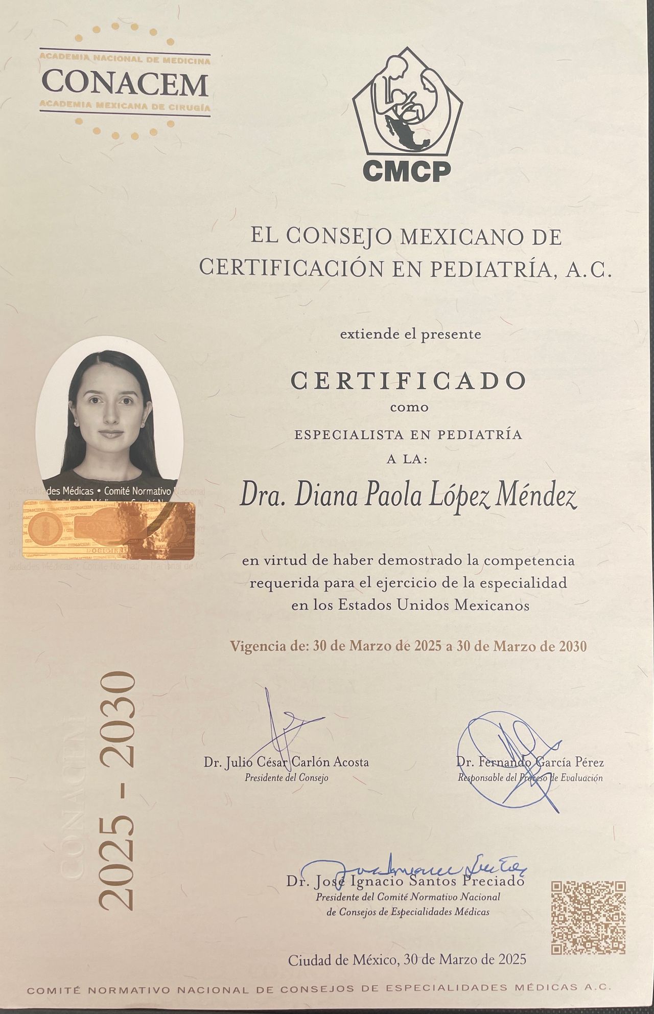 Pediatra certificada por el Consejo Mexicano de Pediatría no. 27645
