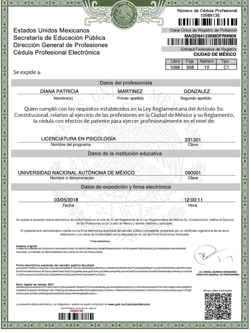 No. de cédula: 10989135