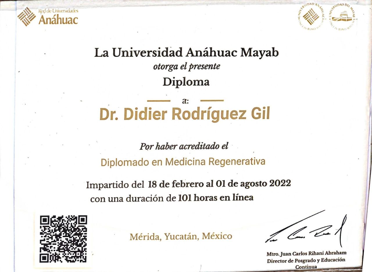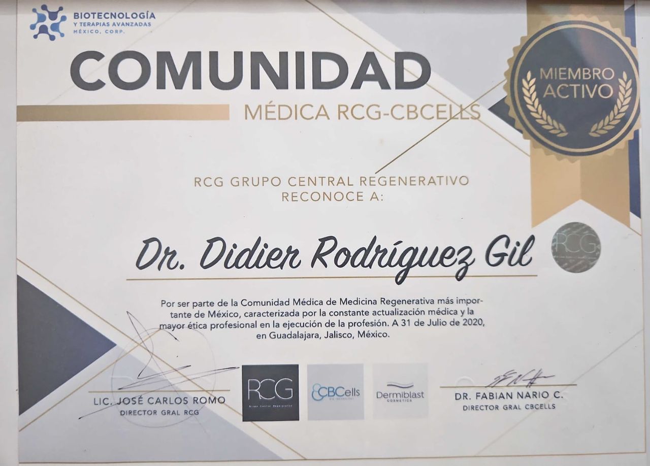 Hola, que gusto poder presentarme contigo soy el Dr. Didier Rodríguez Gil Médico General egresado de la Universidad Cristóbal Colón (Céd. Prof. 10579640) con Maestría en Medicina Regenerativa, Antienvejecimiento y Estética por el IMFE (Céd. Prof. 12885122).