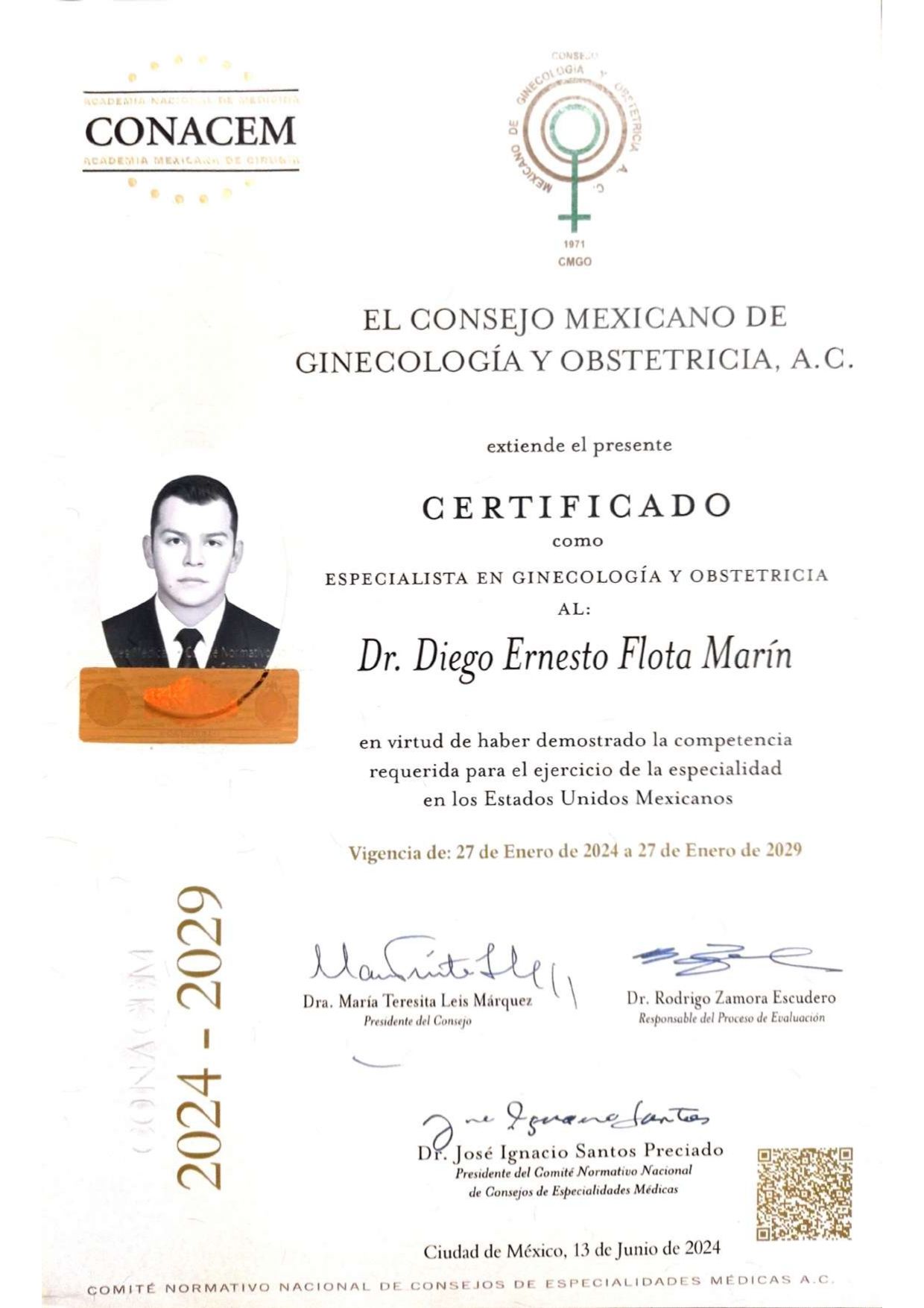 Certificado por el Consejo Mexicano de Ginecología y Obstetricia