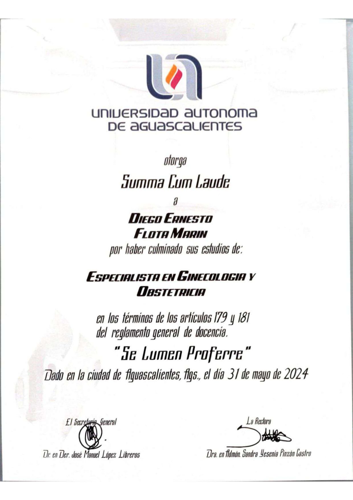 Miembro del Colegio de Ginecología y Obstetricia de Aguascalientes.