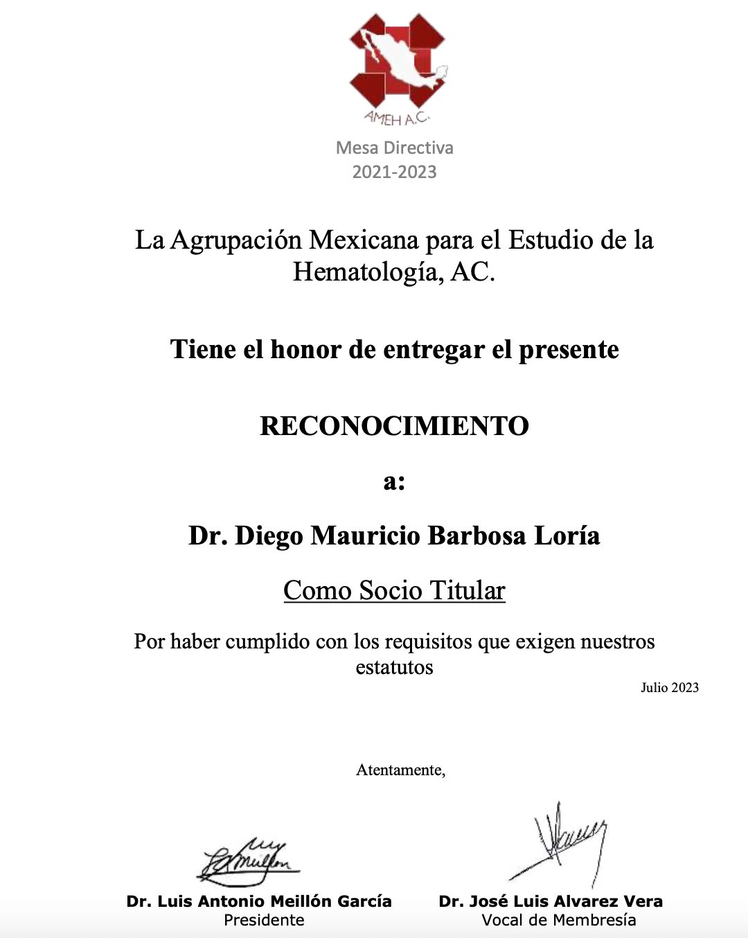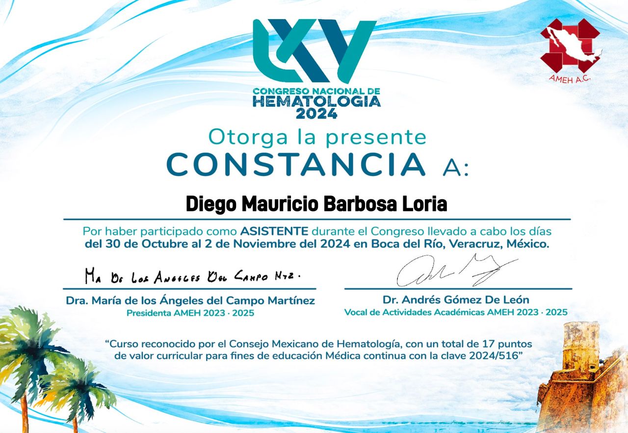 ¡Buenos días! Soy el Dr. Diego Barbosa, Hematólogo y me formé en el mejor hospital de México: el Centro Médico Nacional 20 de Noviembre.