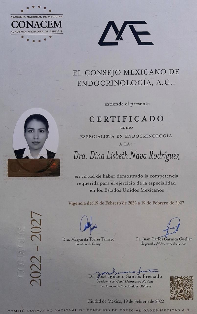 Certificada por el Consejo Mexicano de Endocrinología