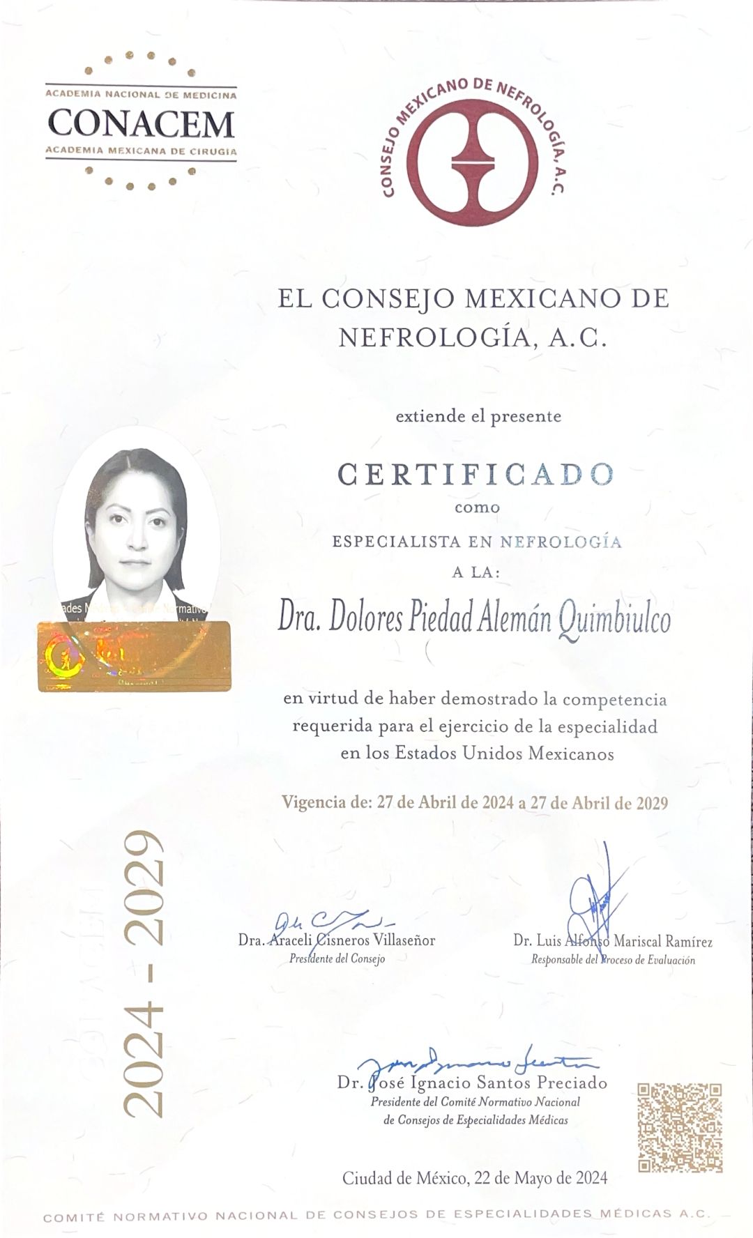 Desde el manejo de enfermedades crónicas como Diabetes e Hipertensión arterial hasta tratamientos avanzados en diálisis y trasplante renal, estoy comprometida con tu cuidado integral.