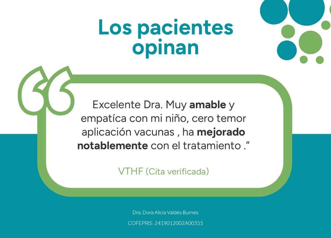 Recomiendo ampliamente a la doctora Dora Valdés, mi niña a tenido un enorme cambio con el tratamiento, además de que es una excelente persona, muy amable y cariñosa con sus pacientitos, mi niña va muy contenta a sus citas.