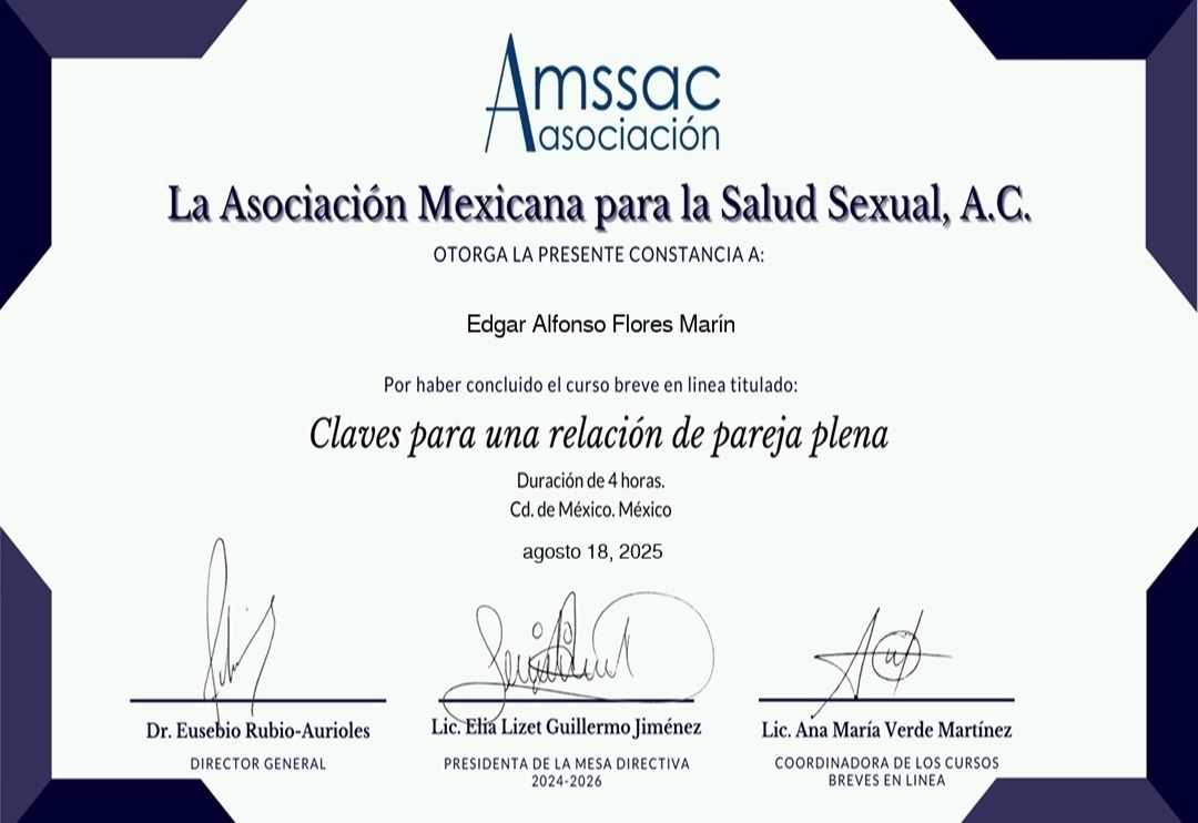 Desde que comenzó mi tratamiento, ha sido muy atento, profesional y dedicado a las sesiones, en lo personal me siento escuchada y segura al expresar como me siento y como actuó ante situaciones. Del mismo modo siempre he recibido grandes observaciones claras y específicas. Así mismo cuando me surgen dudas, busca la mejor manera de ayudarme a comprender, ya sea en la sesión o por teléfono cuando lo requiero está para apoyarme.