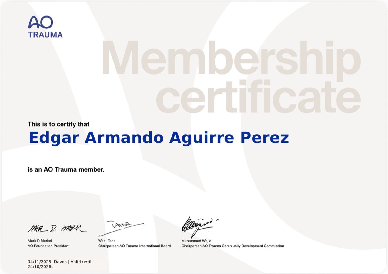 Soy el Dr. Edgar Armando Aguirre Pérez , médico egresado de la Universidad de Guadalajara y especialista en Traumatología y Ortopedia por la Universidad Veracruzana .