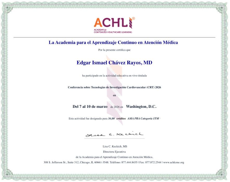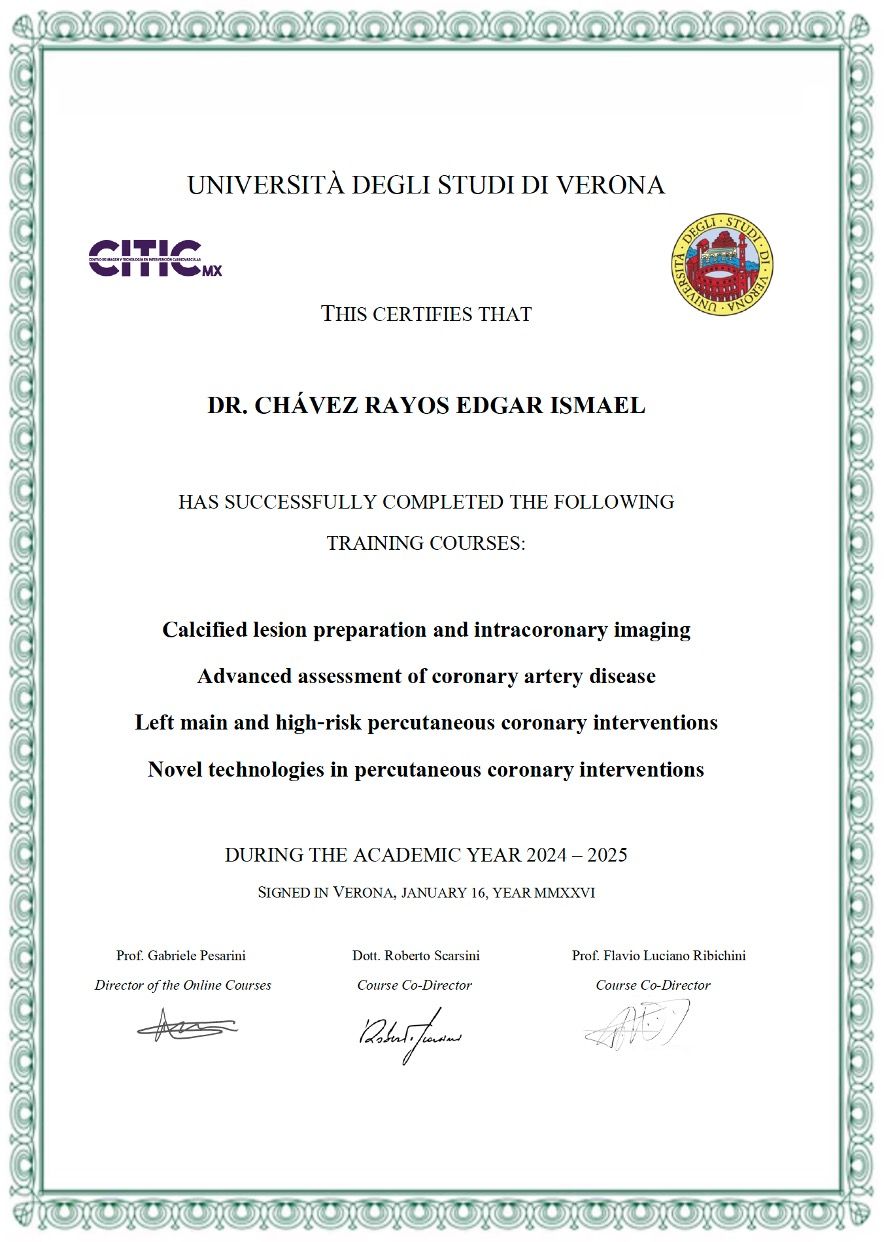 Me he formado en cardiología clínica e intervencionismo cardiaco, con certificación por la Universidad de Monterrey y la Universidad Autónoma de Coahuila (UAdeC).