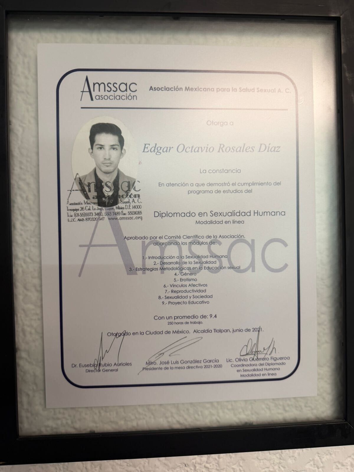 -Certificado como Educador Sexual por la Asociación Mexicana para la Salud Sexual (AMSSAC).