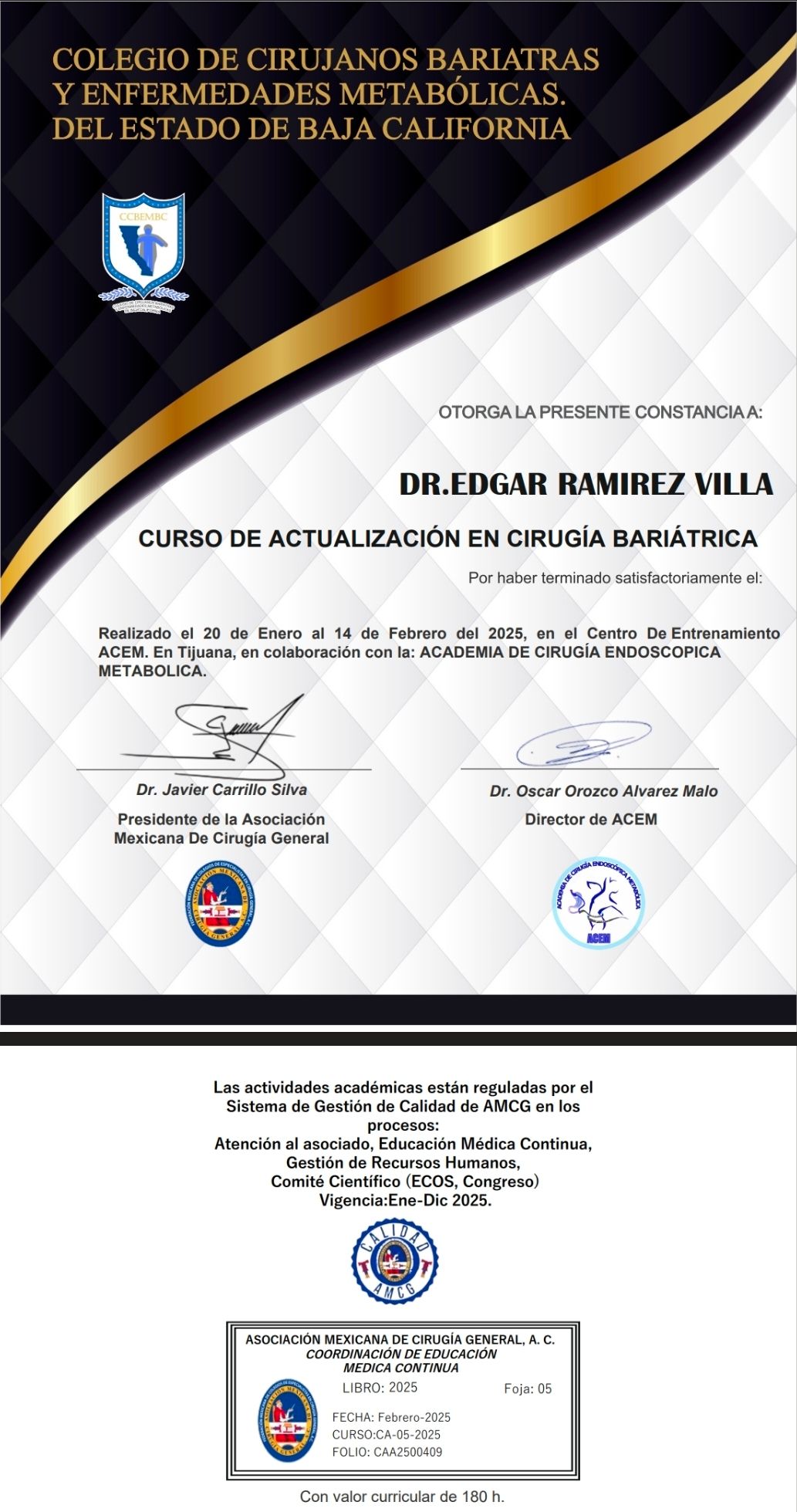 • EDGAR RAMIREZ VILLA CIRUJANO GASTROINTESTINAL/ CIRUGIA BARITRICA • Consulta subsecuente •