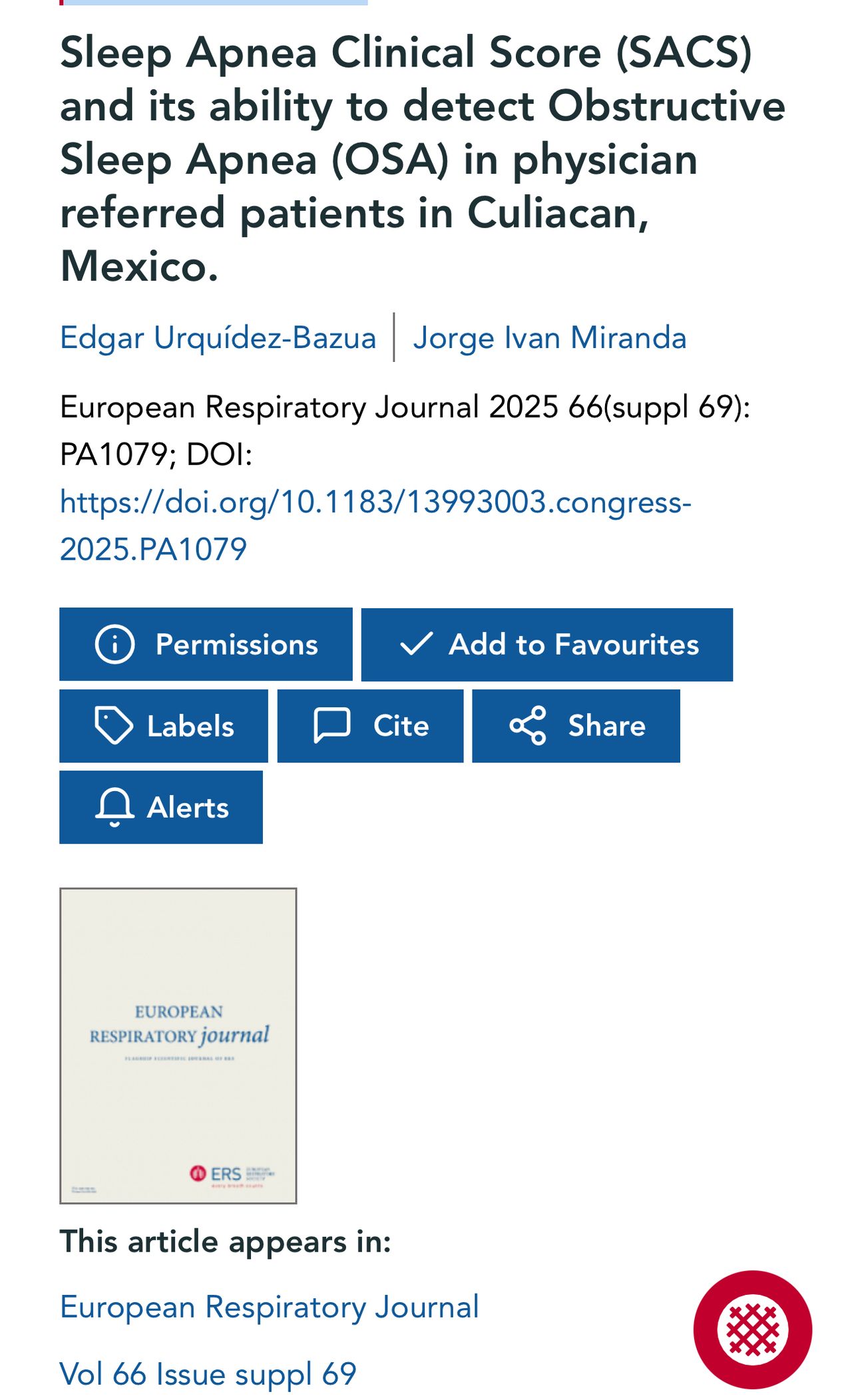 Les presentamos nuestra publicación en la revista de la sociedad europea de medicina respiratoria el Ers sobre apnea obstructiva del sueño!!!