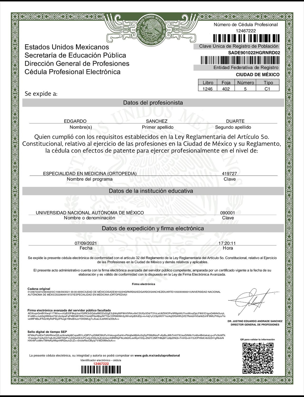 Al doctor Edgardo Sánchez Lo recomiendo ampliamente por su atención y cuidado para mi paciente en la especialidad de ortopedia