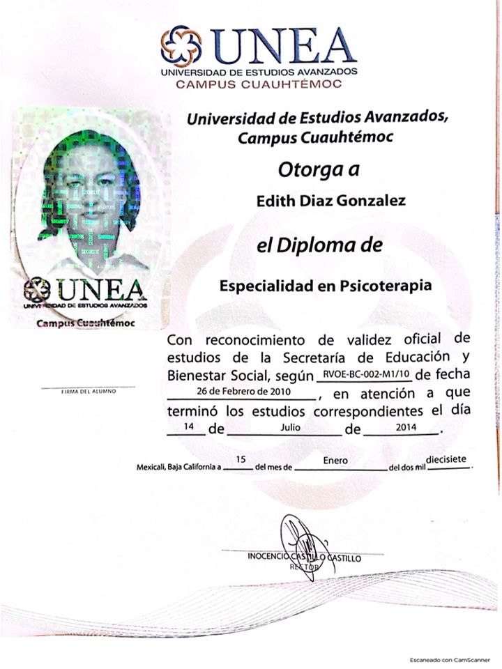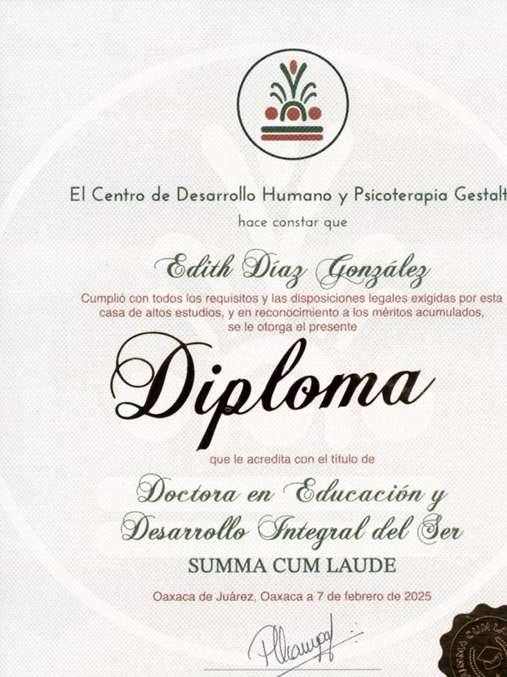 Una excelente psicóloga, dedicada, empática, que atiende emergencias, sin duda ella forma una parte muy importante de mi proceso de recuperación, gracias a ella he podido avanzar de manera rápida y segura, gracias psicóloga Edith por su amor y dedicación.