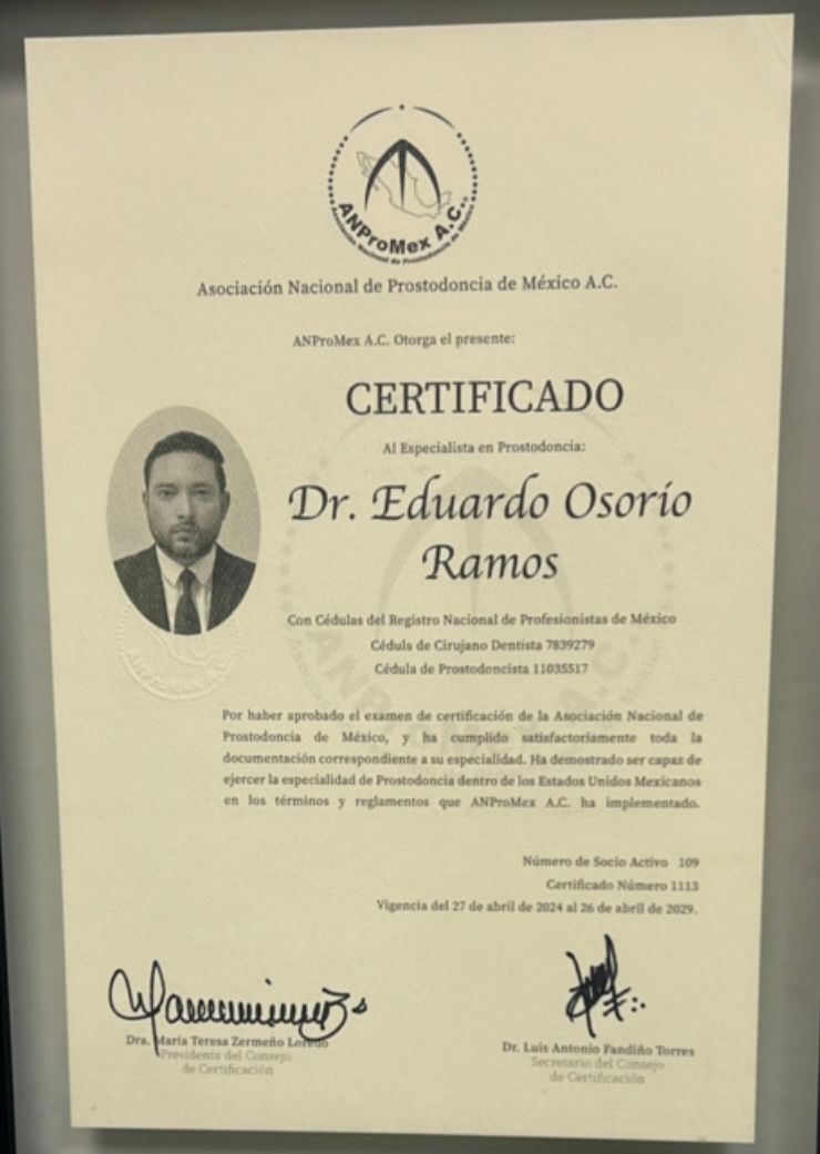 Soy Eduardo Osorio Ramos, cirujano dentista por la Universidad Autónoma de Coahuila, donde obtuve el primer lugar de mi generación, con Maestría en Odontología Restauradora por la Universidad Autónoma de Nuevo León.