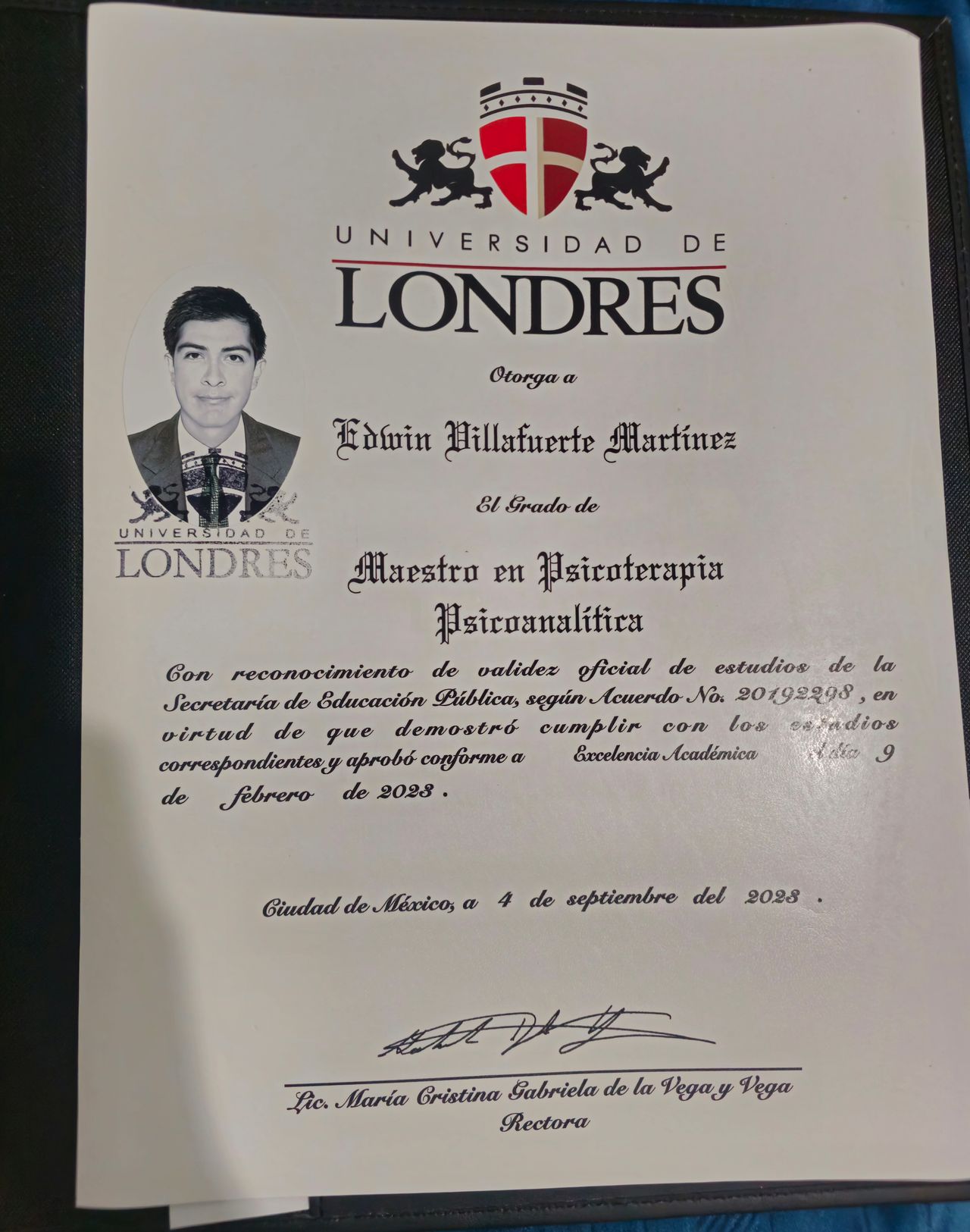 Soy Maestro en Psicoterapia Psicoanalítica, con formación en suicidología, tanatología y análisis de perfiles criminales. Acompaño a personas que atraviesan crisis emocionales, ansiedad, duelos y conflictos personales desde una escucha profunda, ética y sin juicios.