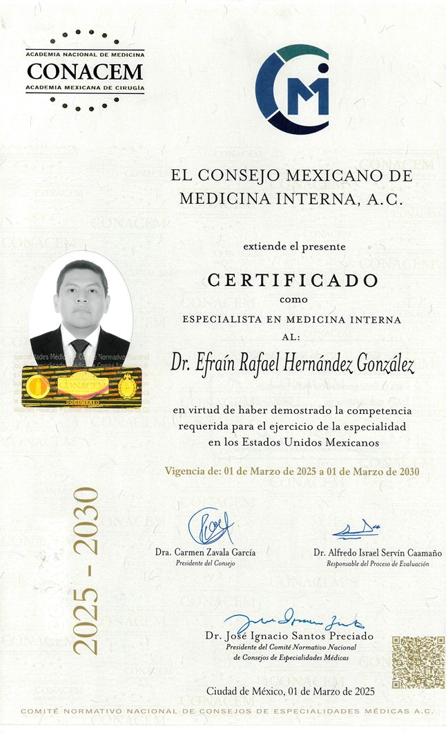 Certificado por el Consejo Mexicano de Medicina Interna
